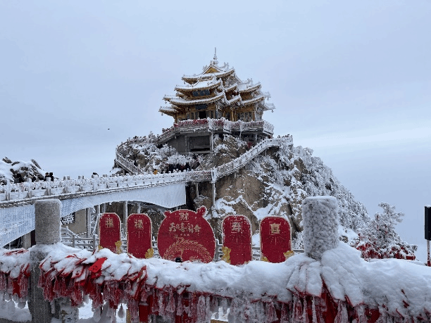 老君山的雪景宛如梦幻之境。山峦被皑皑白雪覆盖,似一条条银龙蜿蜒。树枝上挂满了晶莹剔透的冰挂,宛如玉树琼枝。雪花纷纷扬扬飘落,给古老的建筑也披上了洁白的衣装。金顶在白雪映衬下更显神圣庄严。漫步其间,脚下是咯吱作响的雪,四周是静谧洁白的世界,那纯净的白色,仿佛能洗净世间一切烦恼,让人心醉神迷。
