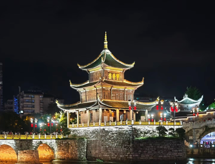 甲秀楼,这座矗立在贵阳南明河上的古建筑,在同学们的镜头下更显古朴典雅。甲秀楼始建于明代,历经数百年风雨依然屹立不倒。它是贵阳历史文化的象征,楼内的各种雕刻和建筑细节都展现了古代工匠的高超技艺。照片中的甲秀楼夜晚灯光亮起时的璀璨,被同学们捕捉得恰到好处。