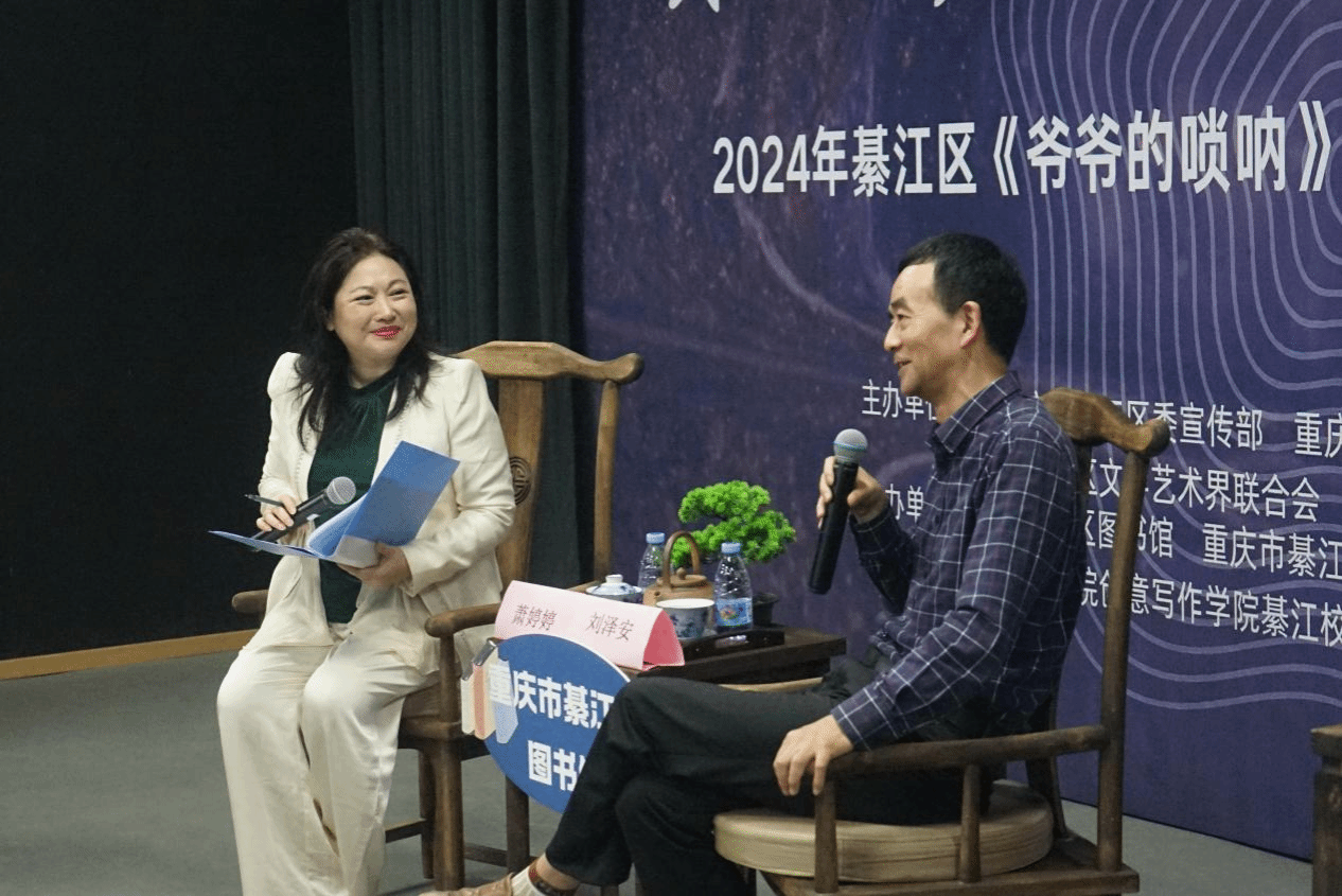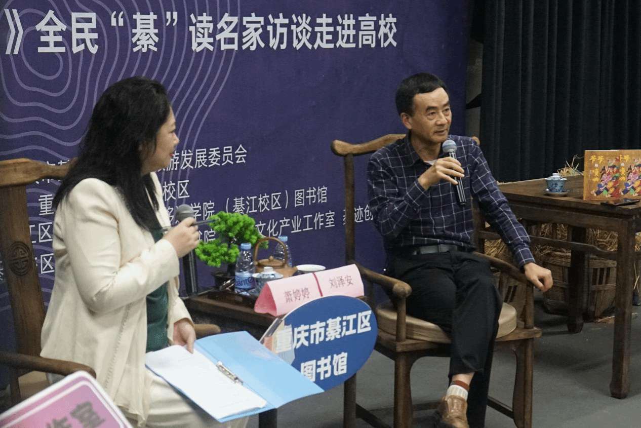 2024年全民阅读《爷爷的唢呐》名家访谈走进高校(重庆移通学院站)活动,邀请到了《爷爷的唢呐》一书的作者刘泽安先生。创意写作学院作家、瀛溪书院綦迹文化产业工作室的指导老师萧婷婷担任访谈主持人,与作家刘泽安进行了深入的对话。