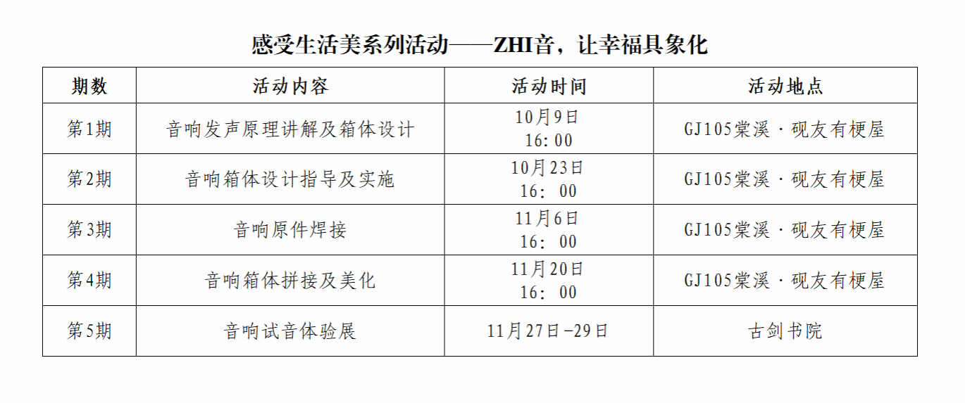 为让同学们直观感受到音乐在自己手中发声带来的幸福感,古剑书院于10月23日下午在GJ105棠溪·砚友有梗屋举办“感受生活美系列活动——ZHI音,让幸福具象化”(第2期)。古剑书院有幸邀请到戏剧影视学院辅导员廖炳屹老师为学子们讲解音响制作原理并带领同学们成为“音响设计师”。