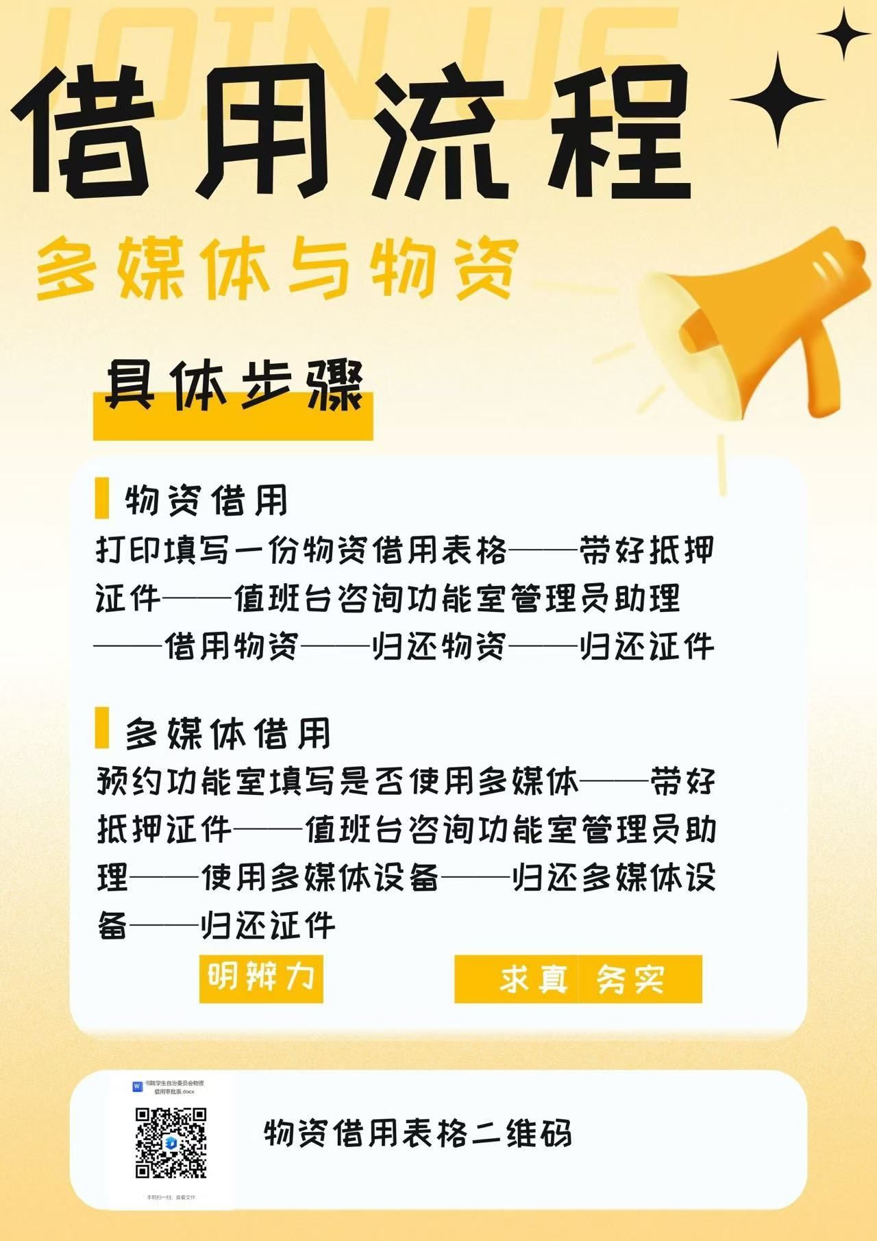南江书院精心设计了多媒体和物资借用流程图,让大家可以轻松完成借用手续。