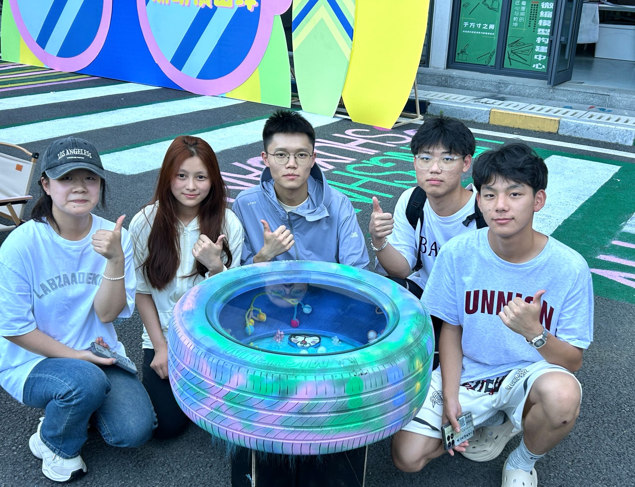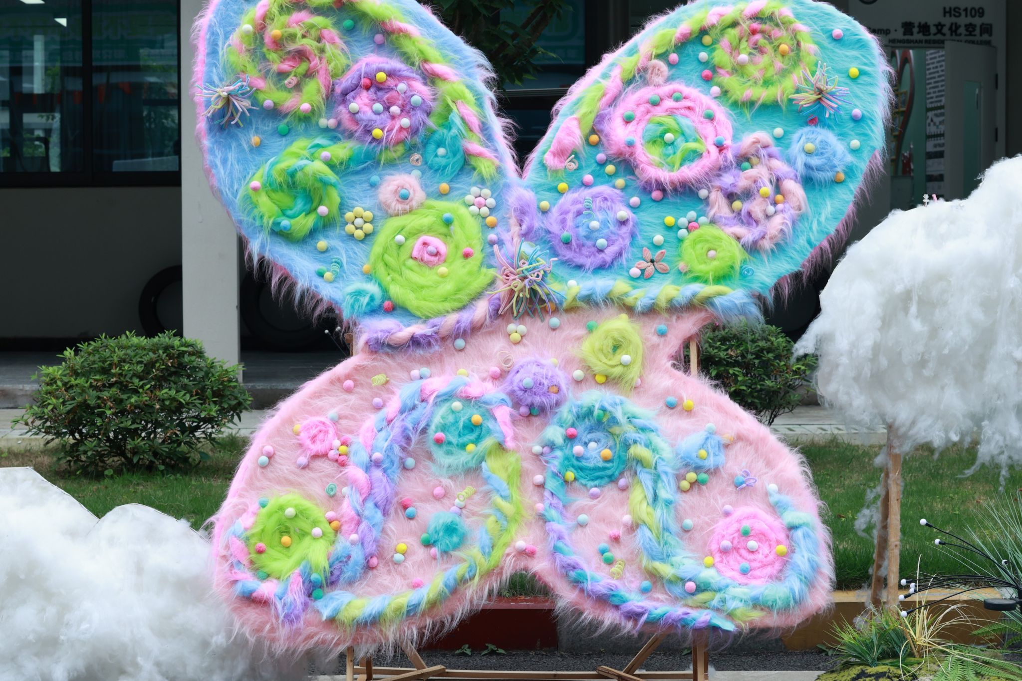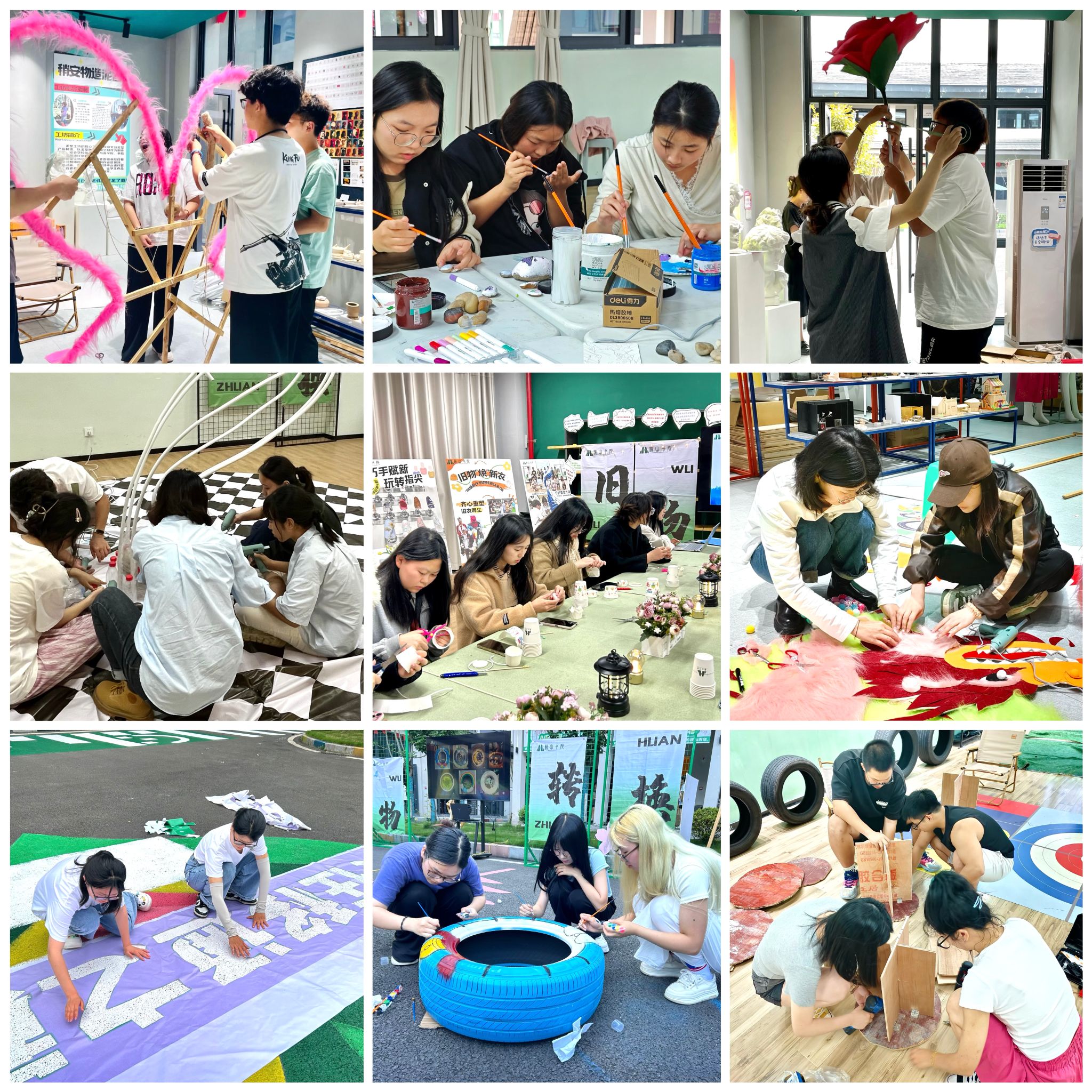 破茧成蝶,自由新生,在旧物重塑过程中,感受蝶变的生命张力。利用木条、铝塑管、布料等废旧物,改造大型艺术装置“浪漫春日蝴蝶”,传递破茧成蝶的生活态度,与未知拥变、与自由共振;带领百余位书院学子进行了为期一个月的地绘改造。结合横山书院“UP社区”标识、地标打卡图案等内容,重塑书院空间,将书院文化融入学子们的日常生活场所,为书院家园阵地增添色彩。