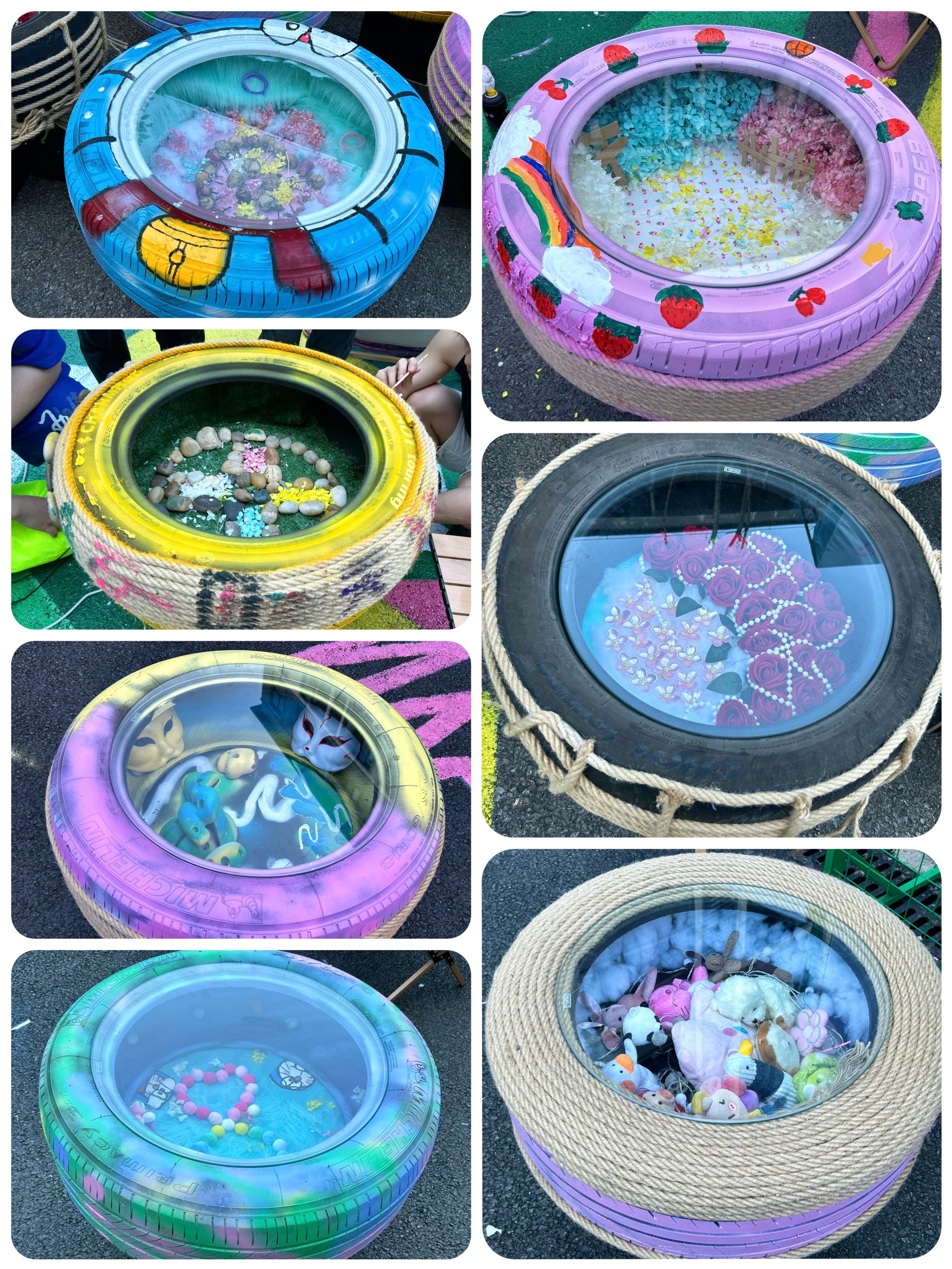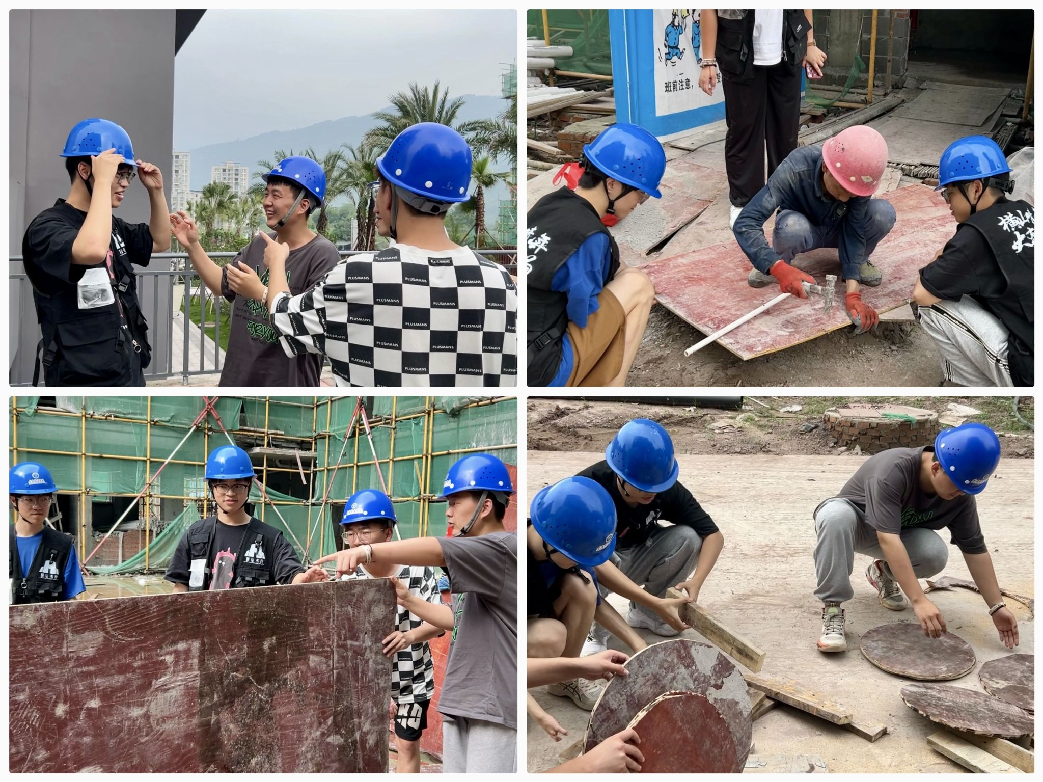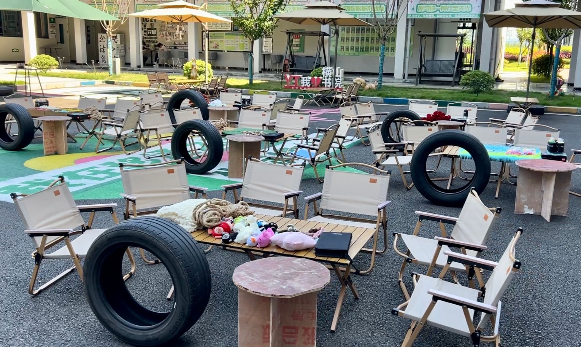 利用校区建设的优势,就地取材,合理利用木板、木条、废旧轮胎等工程废料,打破传统再利用方式,注重作品的创新性、功能性和实用价值;将轮胎及建筑废料改造成7件个性十足、充满艺术气息的实用茶几。