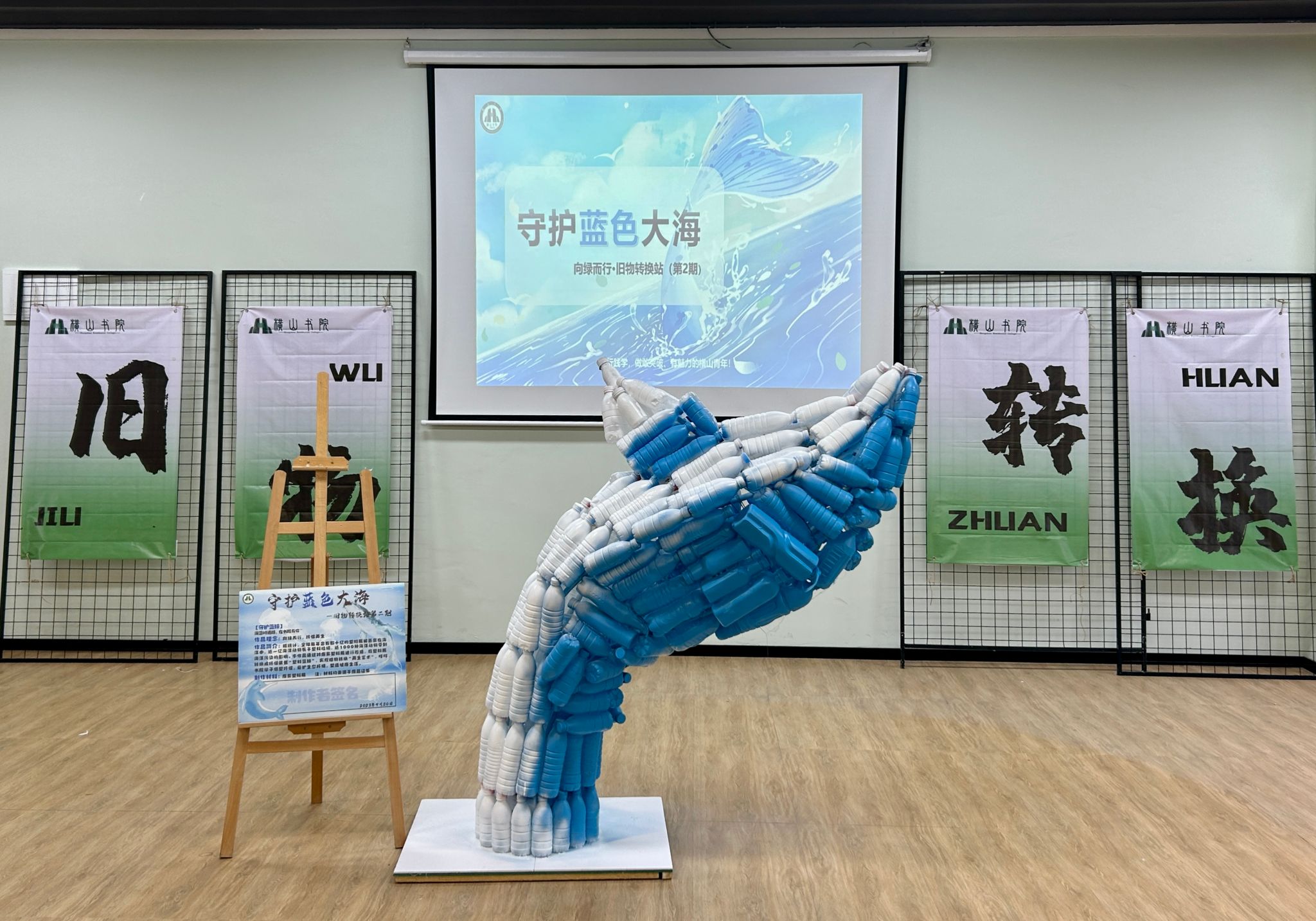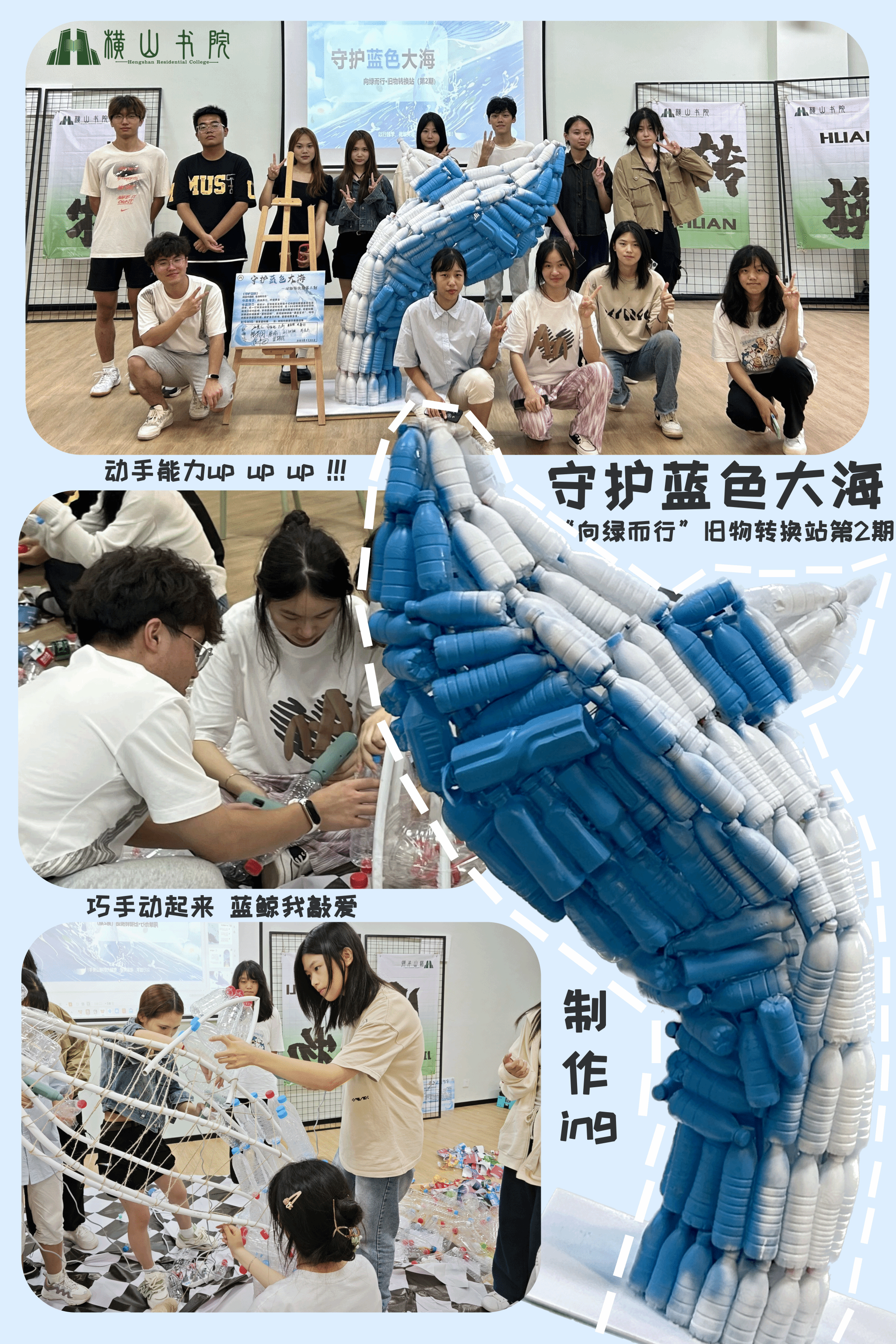 “用900个塑料瓶把海洋垃圾变成艺术品,是我为保护海洋环境做过最酷的事!”一名参与“塑料蓝鲸”改造的同学感叹道。1小时15人900个塑料瓶,实现从“白色垃圾”到“蓝色精灵”的重塑与蜕变,一只高1.7米的“环保蓝鲸”在书院焕然新生。