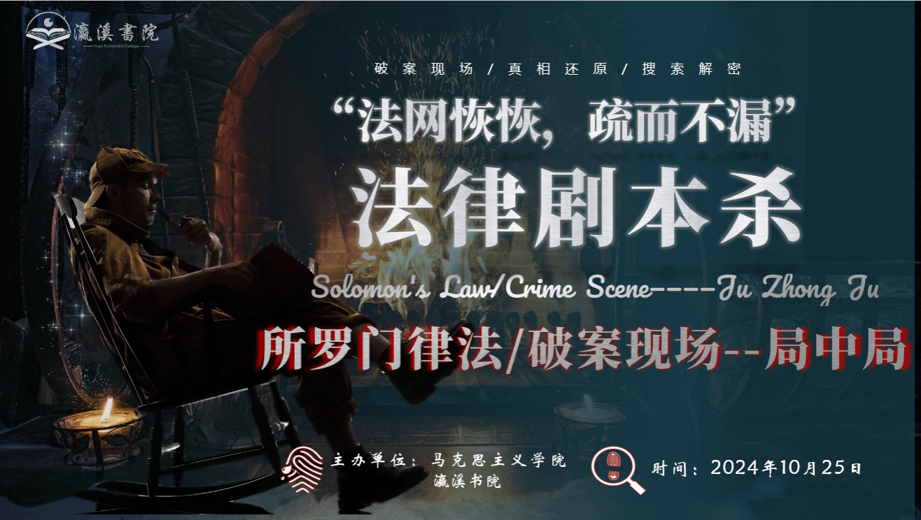 打破传统普法的局限,将晦涩的法律条文与大众潮流、学子兴趣相融合,设计以法律交叉融合不同学科为主题的多类型剧本杀,打造沉浸式的法律学习体验,提高学生风险规避意识和法律素养,培养学生正确的法律观念,实现集教育性、娱乐性、互动性的法律课堂。瀛溪书院联动马克思主义学院开展“法网恢恢、疏而不漏”法律剧本杀活动。本次活动邀请到马克思主义学院马克思主义基本原理教研室黄必琼、向娇两位老师,让学生感受到破除迷雾的过程中法律的力量。