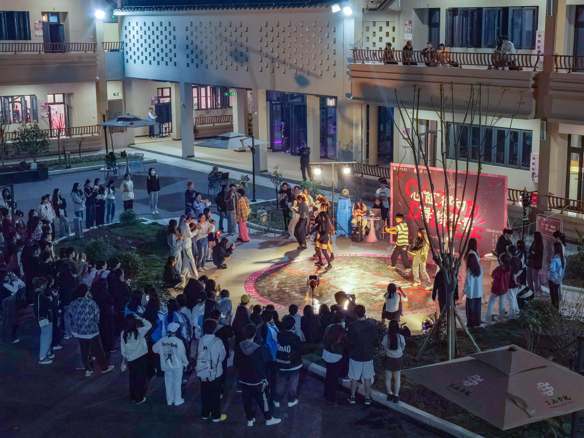 随着时间的推移,夜色愈发深沉,但同学们的热情却丝毫未减。活动中场休息时,仍有同学们随着暖场音乐《sirens》肆意舞动。舞台的灯光在舞者们的身上流转,与夜空中的星辰遥相呼应,营造出一个梦幻般的舞台。每一位同学都在这片被夜色温柔包裹的空间里找到了属于自己的节奏。