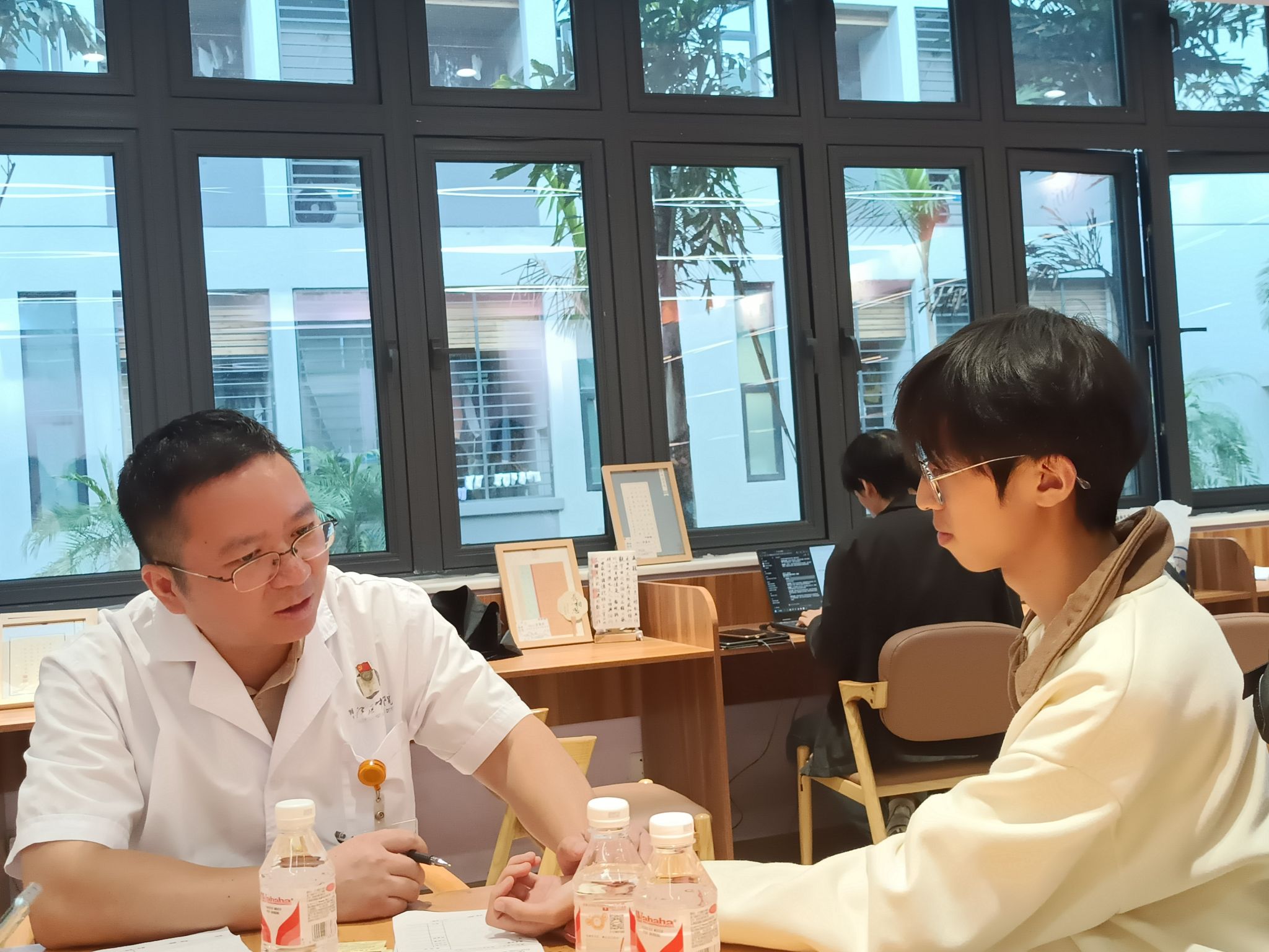 中医们凭借精湛的医术,仅凭脉象便能洞悉体验者的身体状况。当梅医师准确指出体验者因熬夜导致的脉象虚弱时,体验者的脸上露出了不好意思的笑容,周围的同学无不投来敬佩的目光。这一场景,不仅让体验者深感震撼,也让更多同学对中医文化产生了浓厚的兴趣。紧接着是一个个同学被中医摸脉所折服,越来越多的同学从旁观者变成了体验者,他们都想亲自感受这摸脉的神奇之处。