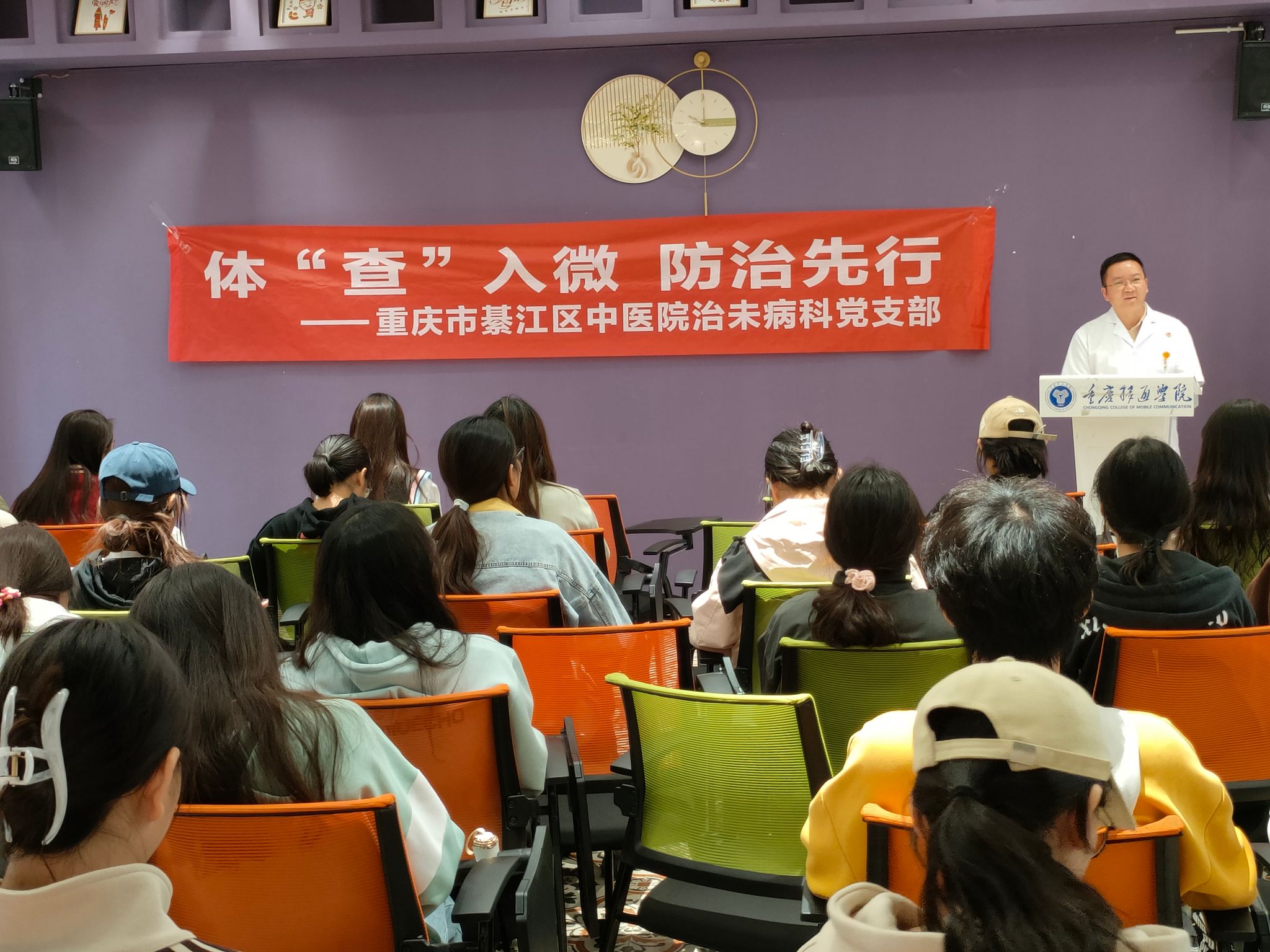 活动在梅雪峰主任的精彩讲述中拉开帷幕。作为綦江区中医院治未病科的党支部书记、科室主任及主任中医师,梅主任以其深厚的学识,将中医的悠久历史与针灸等特色疗法的神奇之处娓娓道来,既展现了中医的博大精深,又激发了同学们对中医文化的浓厚兴趣与探索热情。