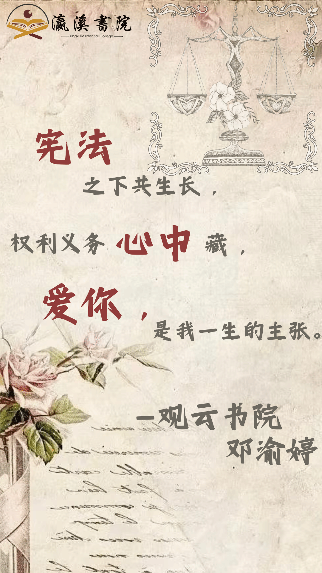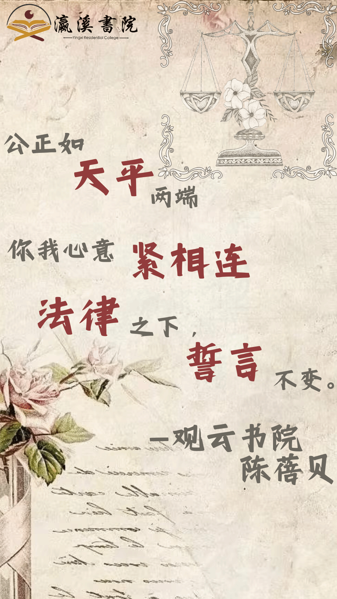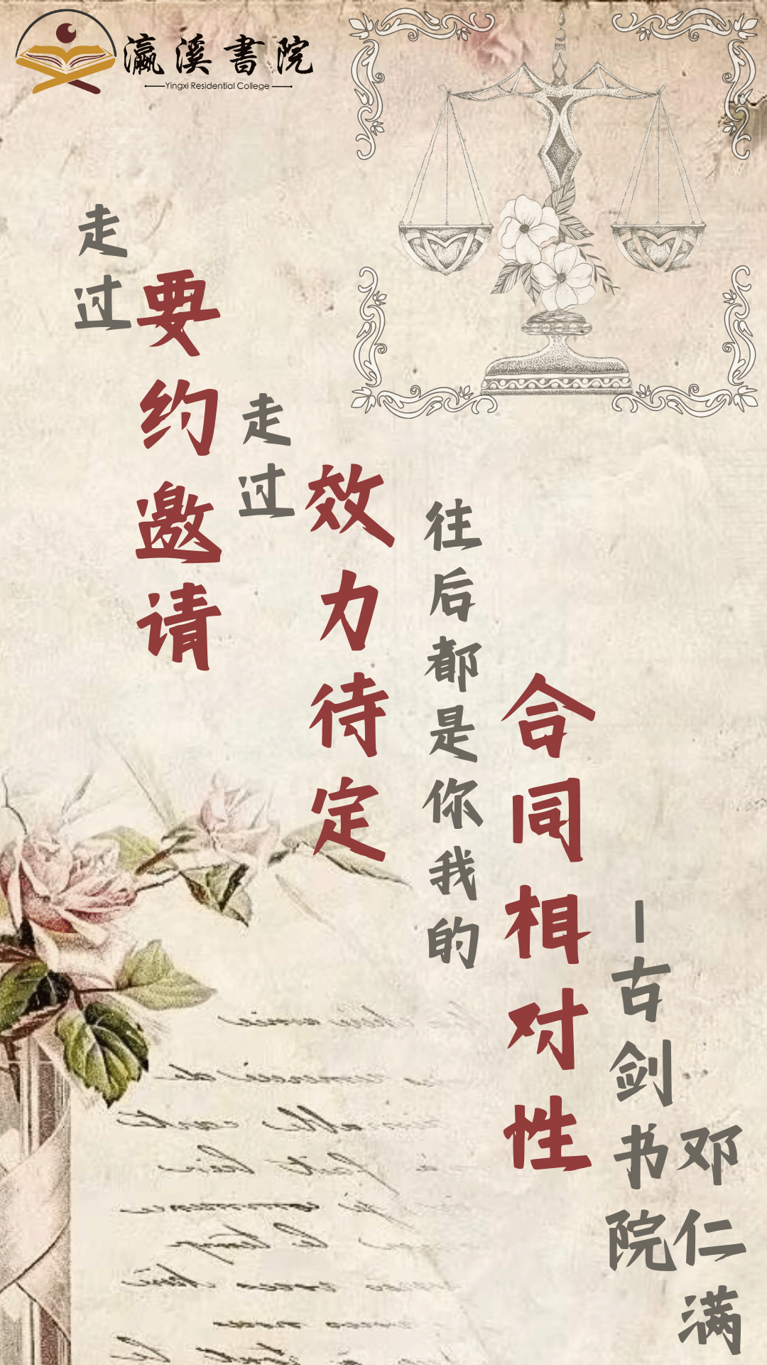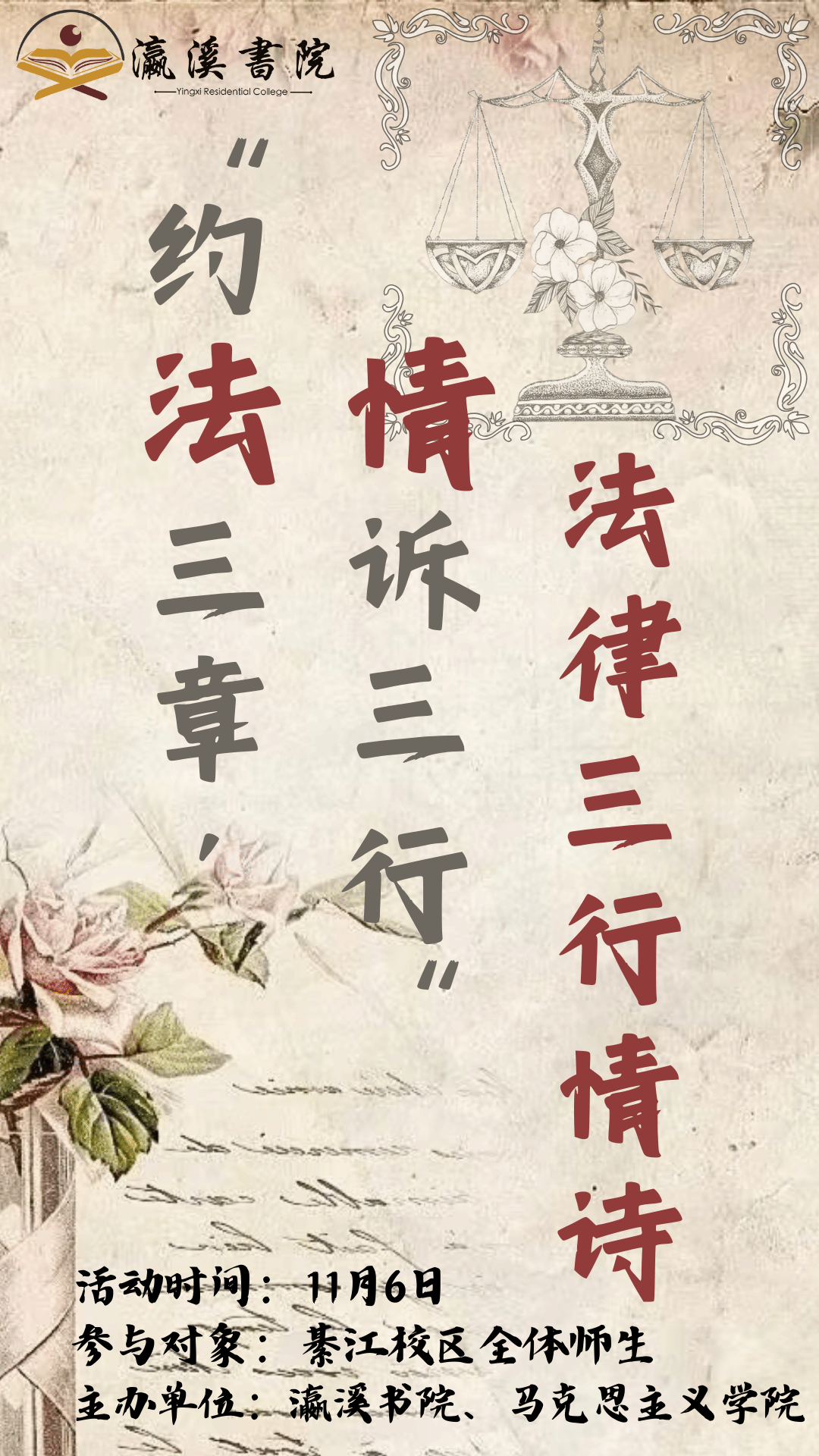法律通常被视为严谨、理性的代表,而三行情诗则是一种浪漫、感性的表达方式。瀛溪书院联动马克思主义学院开展“约法三章,情诉三行”法律三行情诗活动,通过趣味性的形式、艺术化的表达方式,将法律术语、法律概念与三行情诗相结合,激发学生法律创作热情,增强学生法律认同感和风险规避意识,提高学生法治观念和法治素养。本次活动邀请到了马克思主义学院马克思主义基本原理教研室叶合柳、廖倩荣两位老师,带领同学们感受法律的多维度魅力。