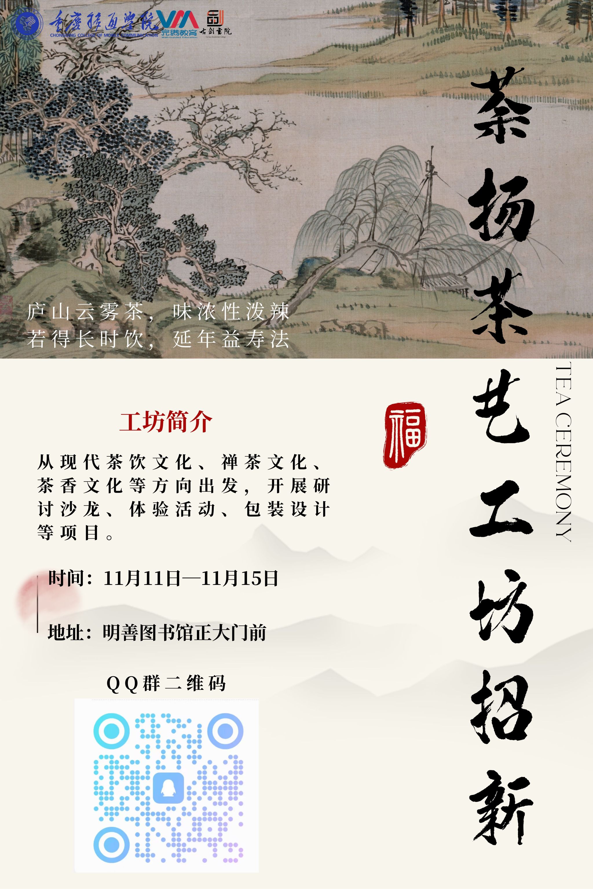 如果你也想要在大学生涯中学习茶艺,掌握一门手艺,加入荼扬茶艺工坊绝对是你的不二之选!