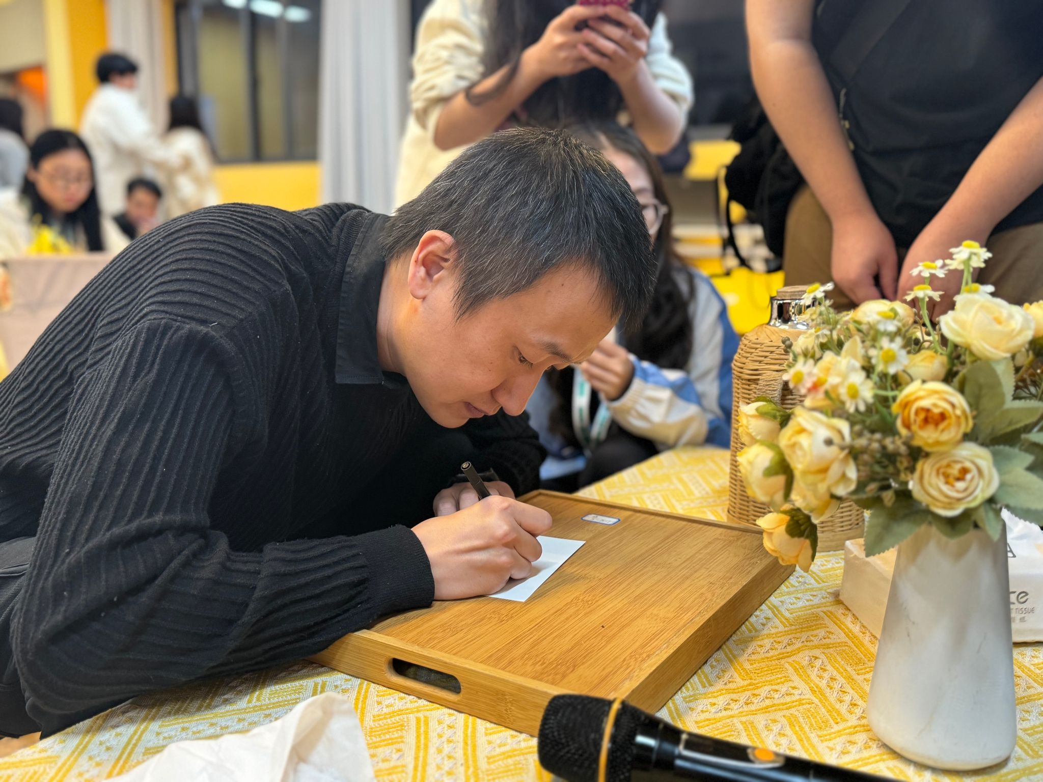 活动结束之际,迎来了令人期待的签名环节。现场观众热情高涨,纷纷拿着徐宁导演的相关作品或卡片,有序地排队等待签名。徐宁导演耐心地为每一位同学签名,并与他们亲切交流、合影留念。这一温馨的签名环节不仅拉近了导演与观众的距离,更让大家感受到了他的亲和力与对动画事业的热爱。