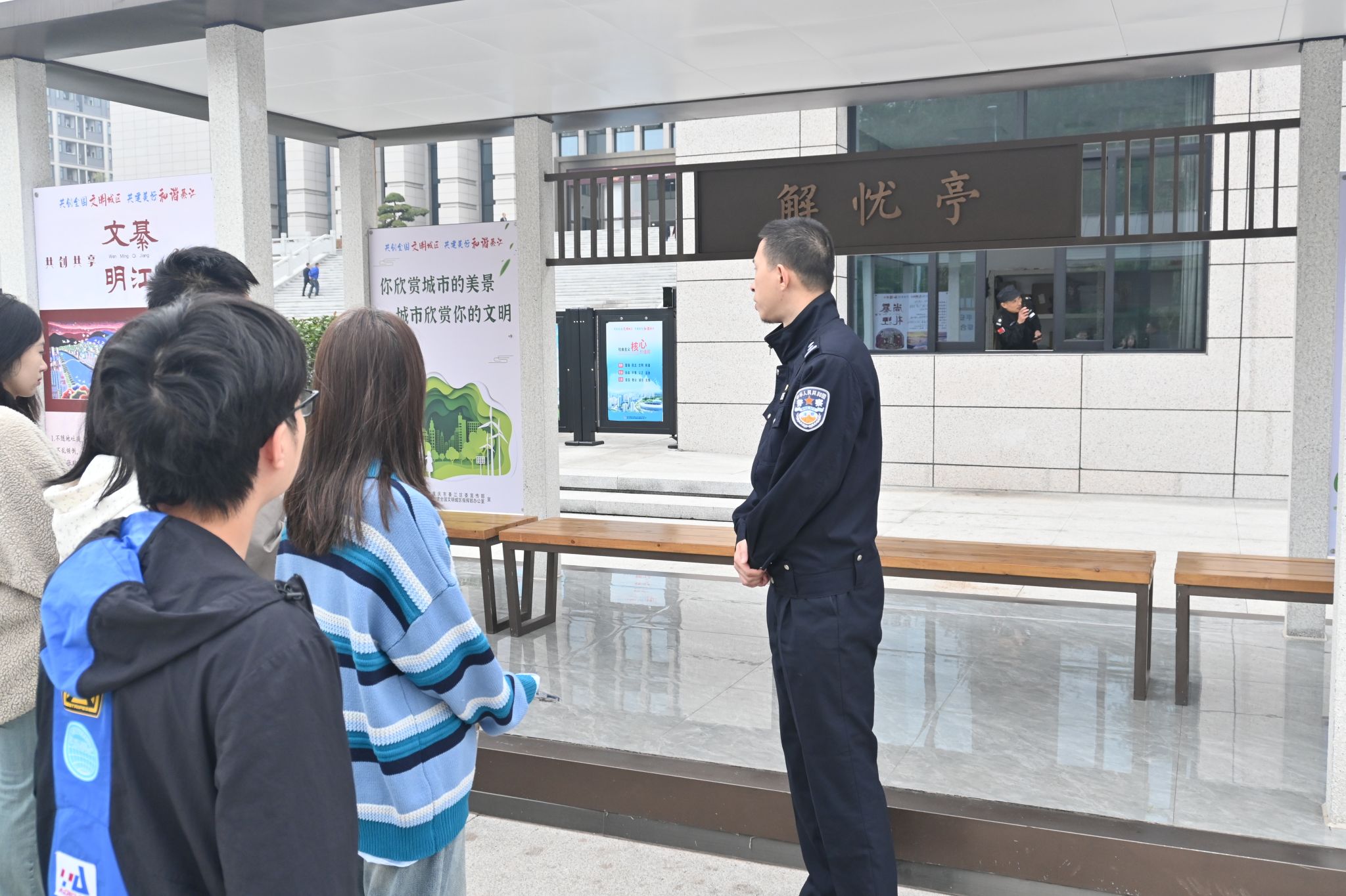 另一组同学,则开启了法治工作体验之旅。在法警的带领下,同学们先是参观了法警们平日的工作场地,近距离了解了法治相关工作的详细流程,知晓了各类相关工具的具体运用方法,以及法警的日常工作职责。不管是维护法庭秩序,保障庭审能够安全顺利进行,还是负责押送犯人等诸多重要方面,每一项工作都有着极为严格的规范与要求,容不得丝毫马虎。同学们通过对立案大厅、信访大厅、羁押通道、审判法庭等重点场所进行活动体验,真切感受到法警工作的细节性和严谨性,法警的工作不仅是维持秩序,背后更是对人民的责任。