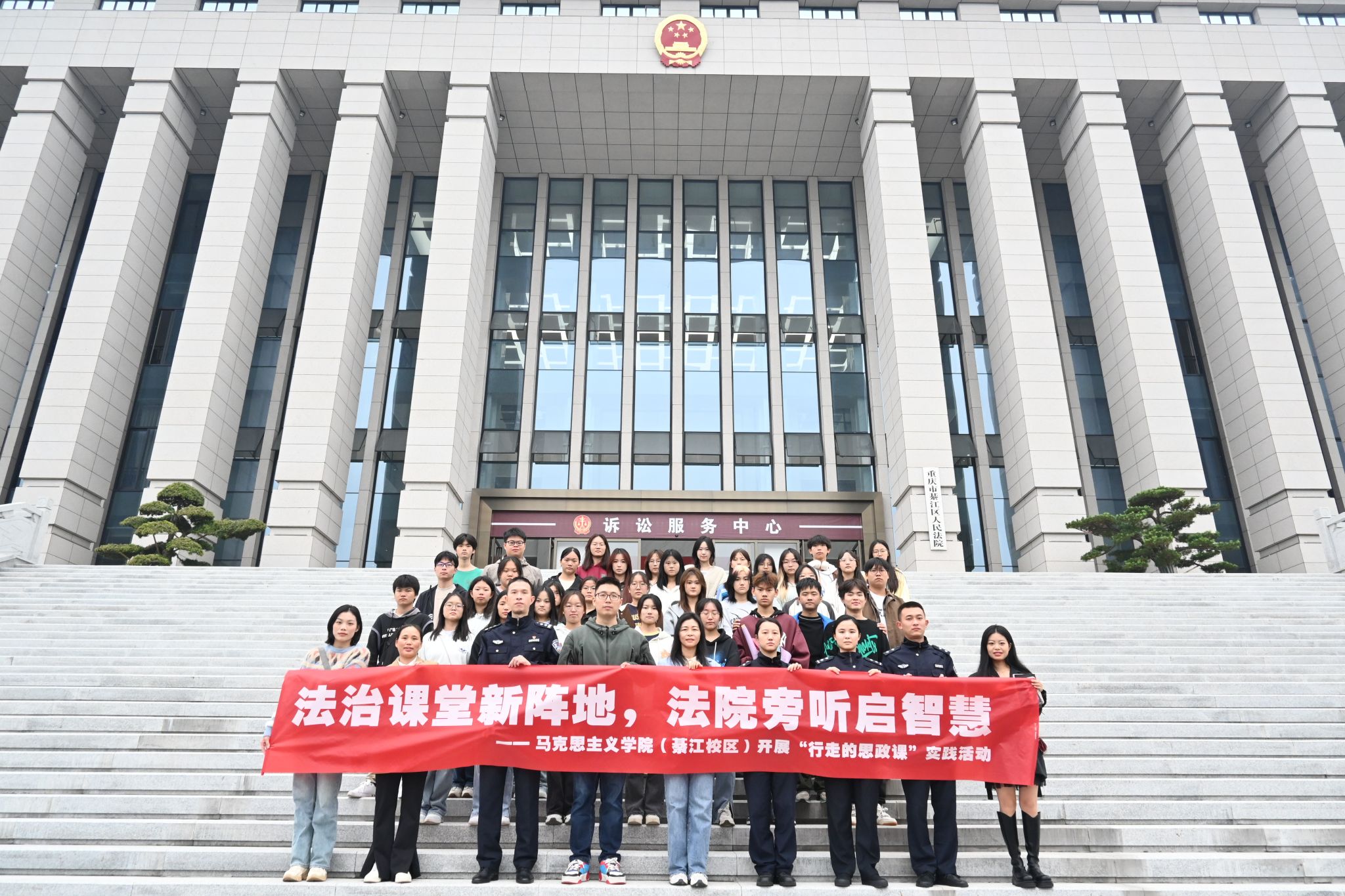 “在法庭上,每一个细节都可能成为正义的基石;在旁听席上,每一双眼睛都可能是公正的见证。”瀛溪书院将校地共建法治教育基地作为法治教育主阵地,积极与綦江区人民法院展开深度合作,以案释法,以法育人,同时联动马克思主义学院,集三方合力,开展“行走的法治课堂”主题活动,加强学生法治观念,提高学生风险规避意识。此次法治探索之旅,由瀛溪书院陈佳俐及马克思主义基本原理教研室陈静、唐翎月、潘家玲四位老师带队,带领同学们零距离感受司法公正。
