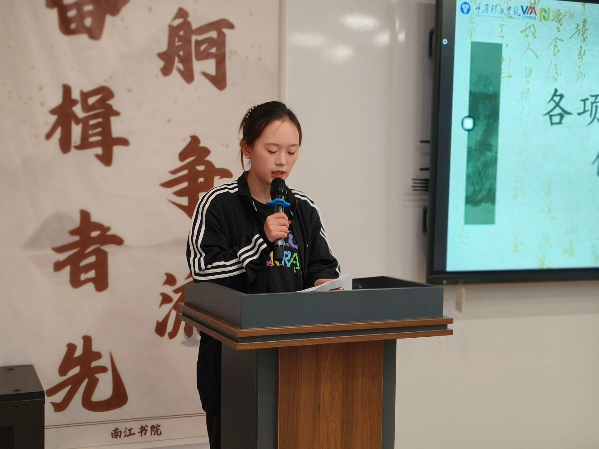 仪式之初,主持人对出席人员的到来表示热烈欢迎。首先,由南江书院综合办公室主任罗美琪老师从南江书院的基本情况、双核文化出发,对整体规划和发展方向作了分享。南江书院的领导力是明辨力,家文化是求真务实;书院作为一个空间主体,除了管理与使用,还承载着为学子们提供大量资源与平台的功能。书院将大力支持项目工坊的后续发展与成果孵化,致力于携手与各单位以工坊平台为契机,为每一位学生创造更加有利于个人发展的环境,共同搭建、引入更多更好的资源平台。