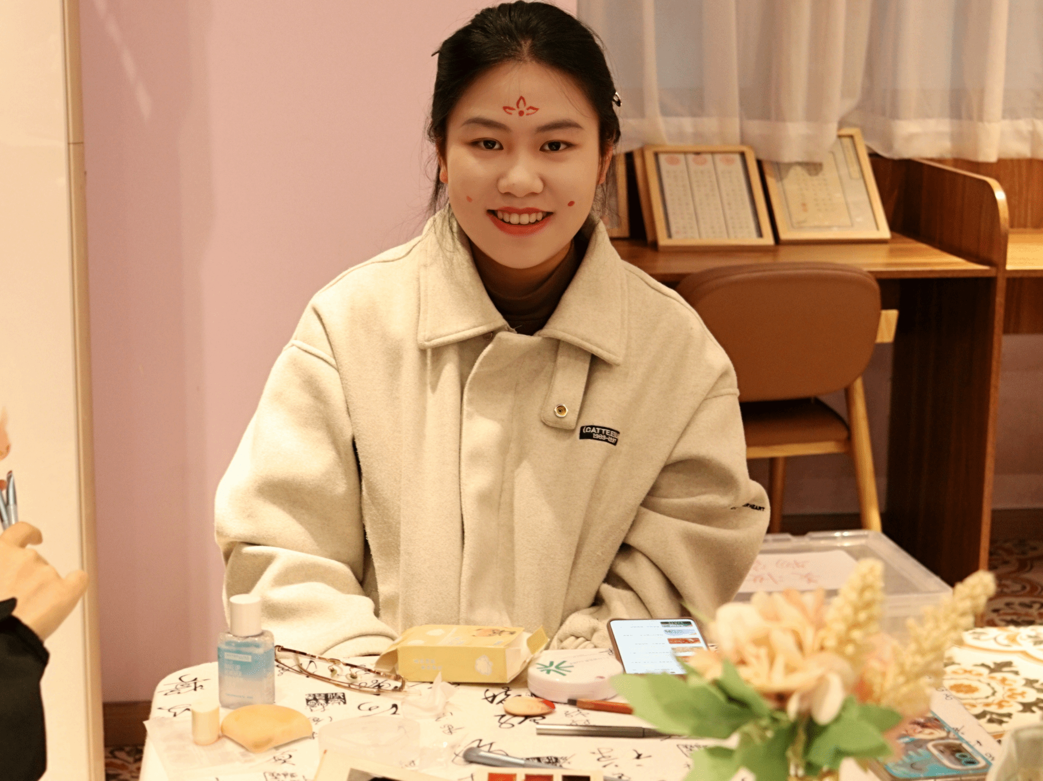 “远赴人间惊鸿宴,一睹大唐盛世颜”,从远古到现代,从捡拾贝壳到制作妆品,从草木花叶到矿石材料,人类对美的向往从未停止。11月20日下午16:30,观云书院联合Colorful美妆协会在观云书院GY105芒种·华文书吧开展“国风美人请就位第2期 ‘妆’点盛唐”活动。本次活动旨在让同学们一起学习并自己动手画出大气秾丽的唐代妆容,亲身体验唐代的独特魅力。从女子妆容可展现时代面貌与历史变迁,唐朝繁荣缓缓向同学们铺陈开一幅绮丽画卷。