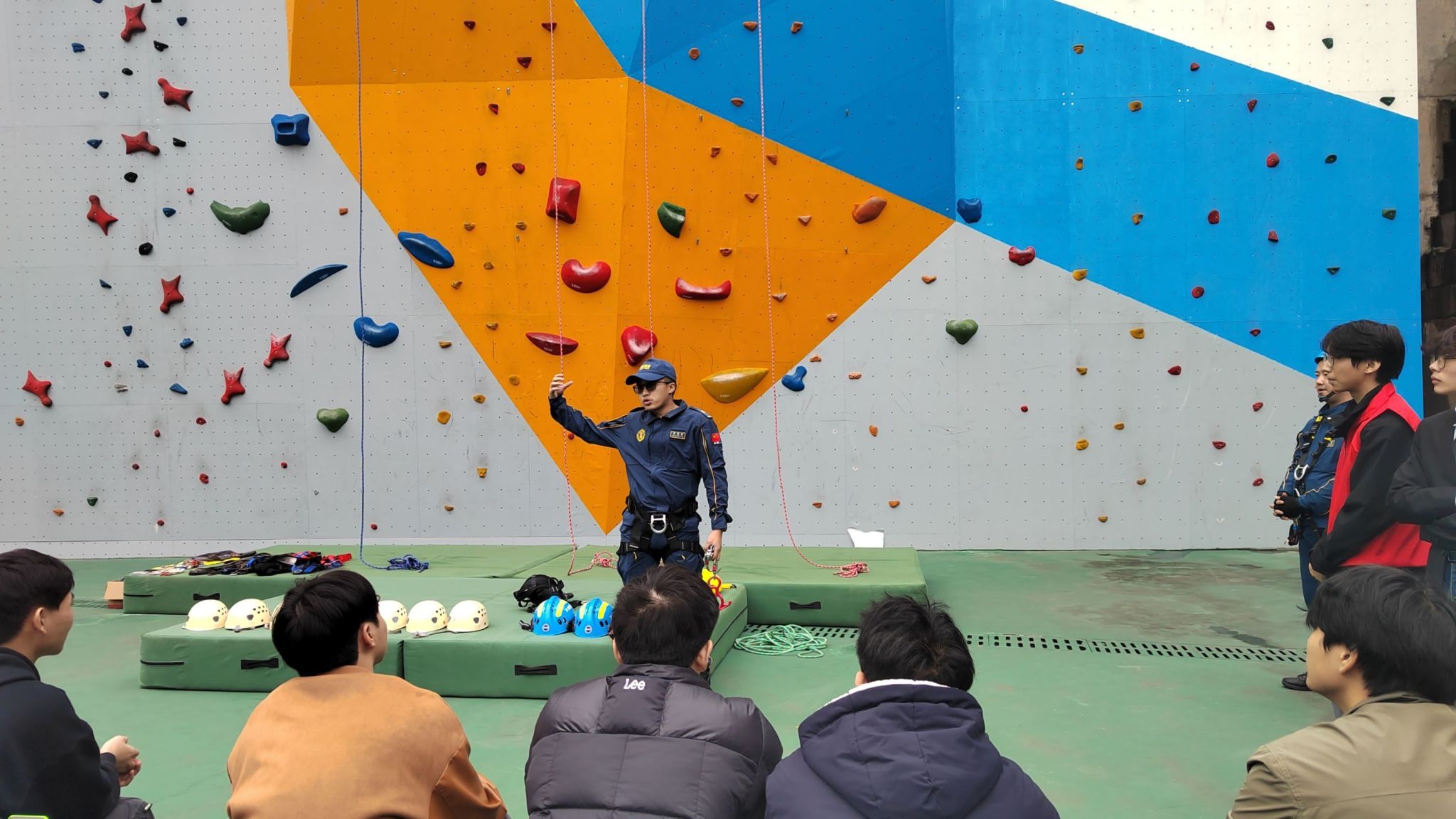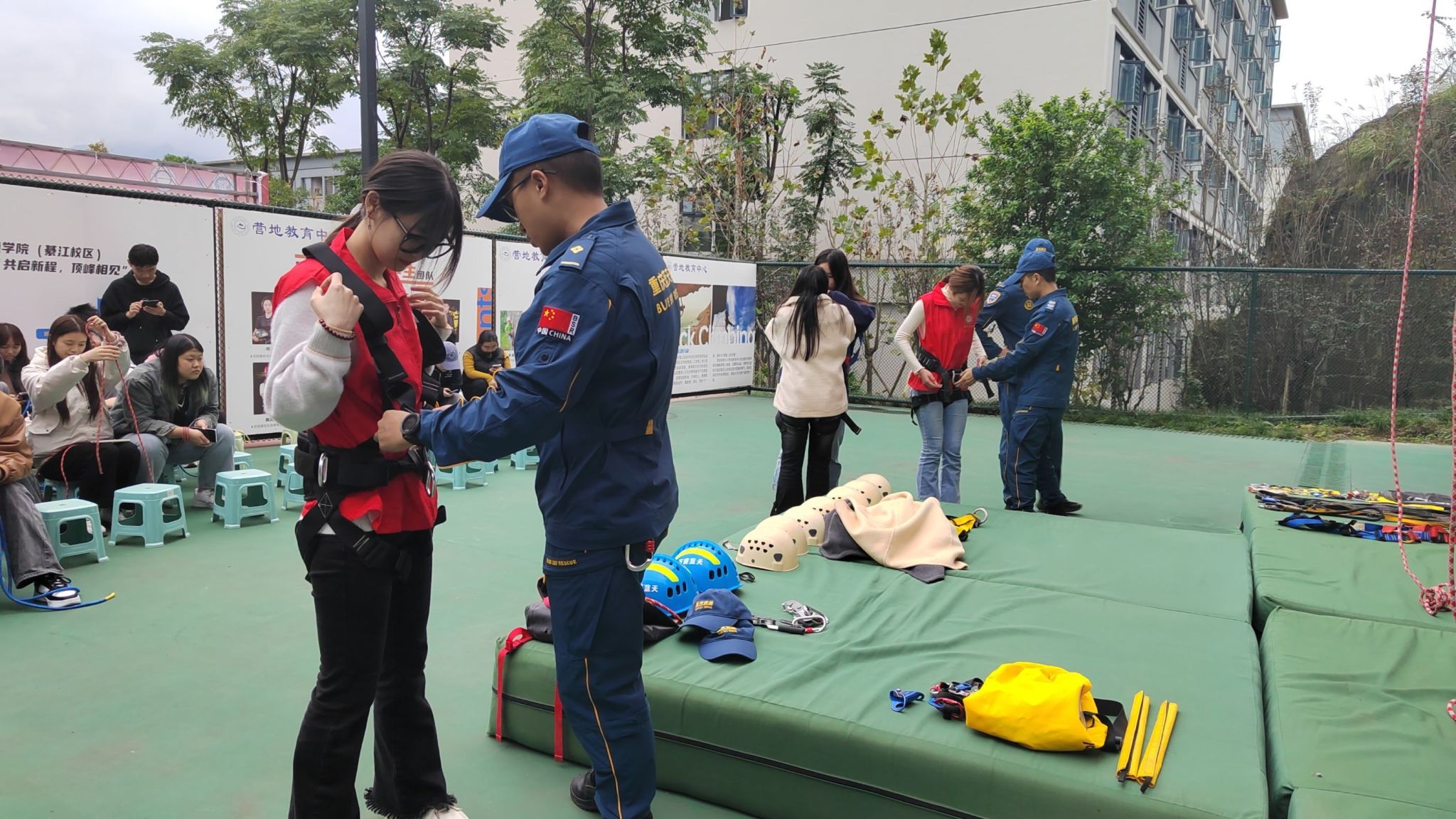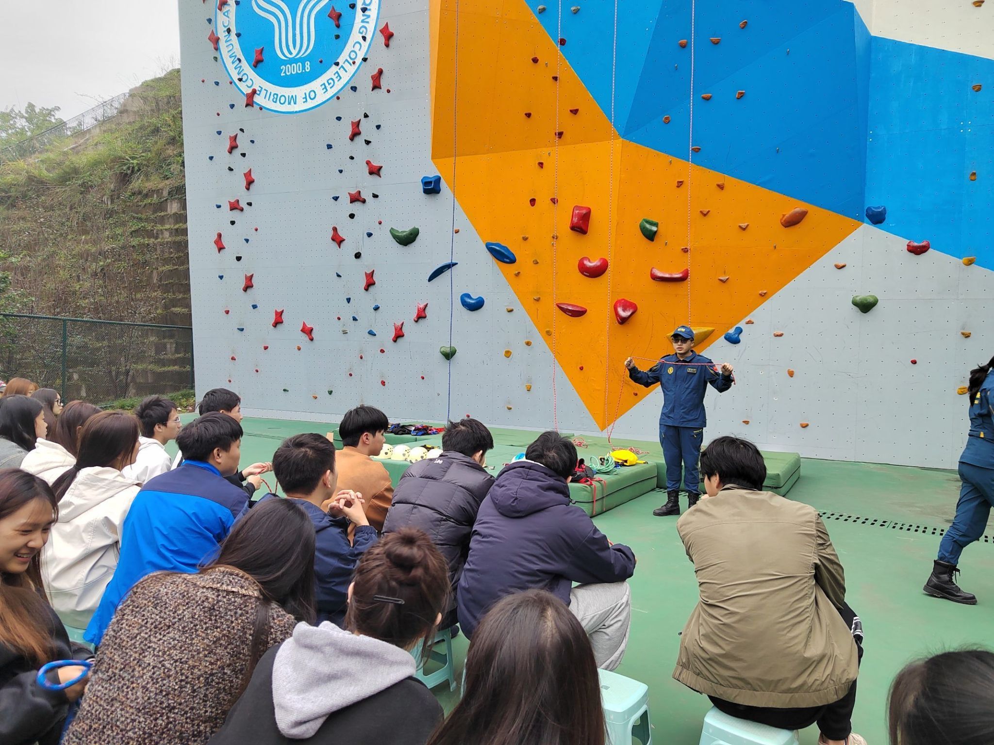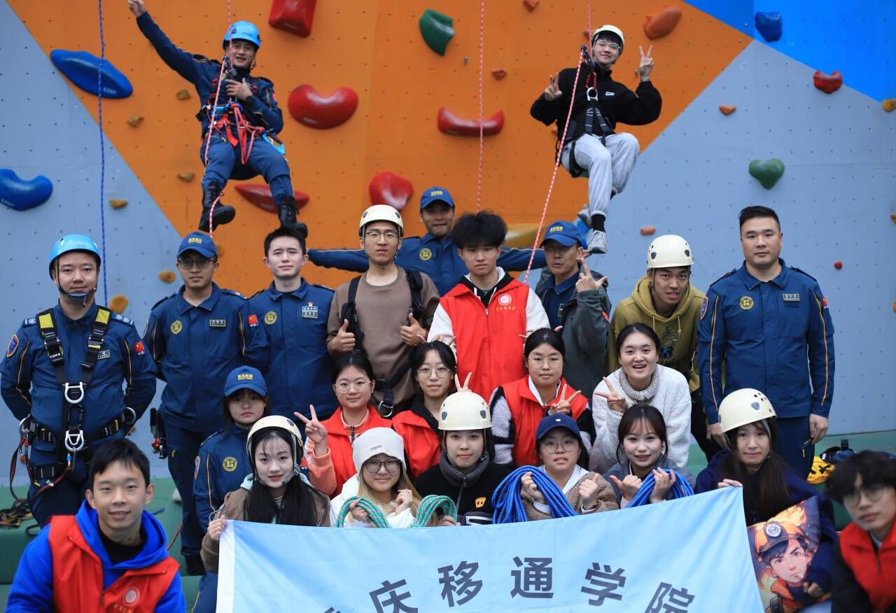 2024 年 11 月20日,校园内攀岩墙举办了一场以 “思则有备,备则无患” 为主题的 119 消防宣传月自救互救技能培训活动。此次活动由重庆移通学院安稳办、保卫处主办,由计算机学院和玉棠书院承办,并邀请了重庆市蓝天救援队协办。此次活动面向移“綦”向蓝天·应急救援志愿服务专项支队队员及全校学生,旨在普及消防安全知识,提升大学生在突发事件中的自救互救能力。