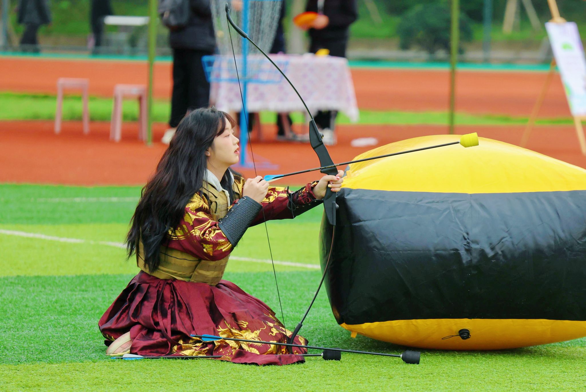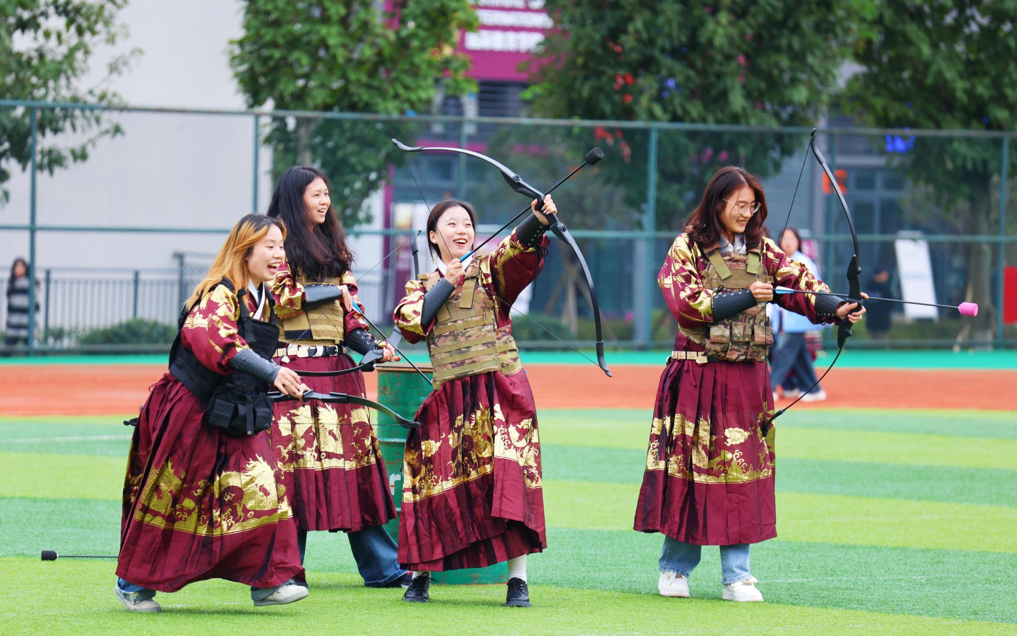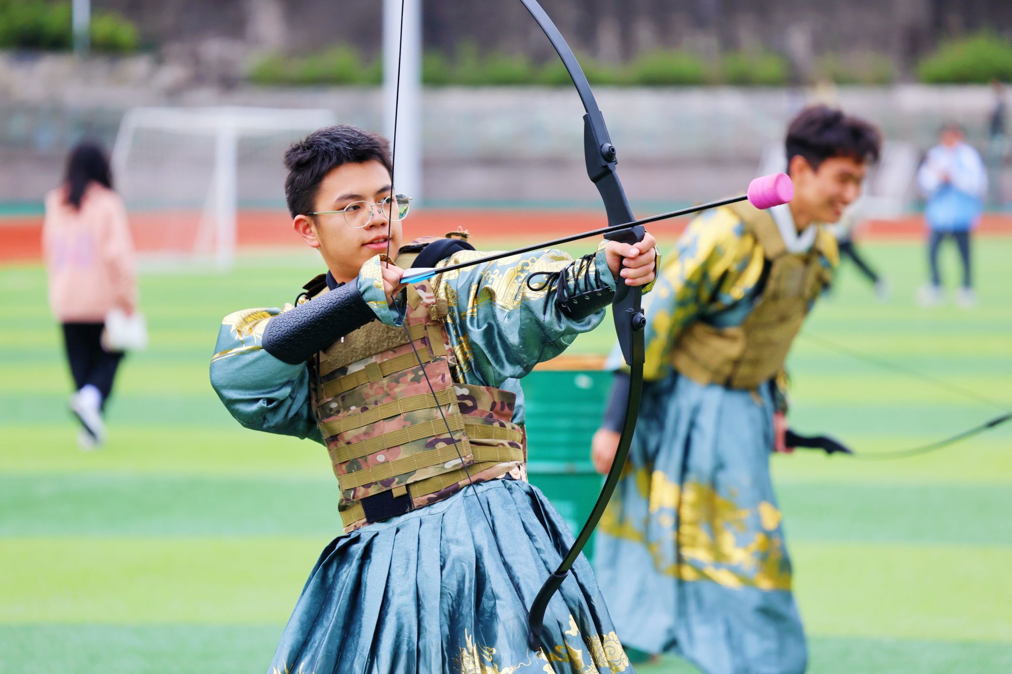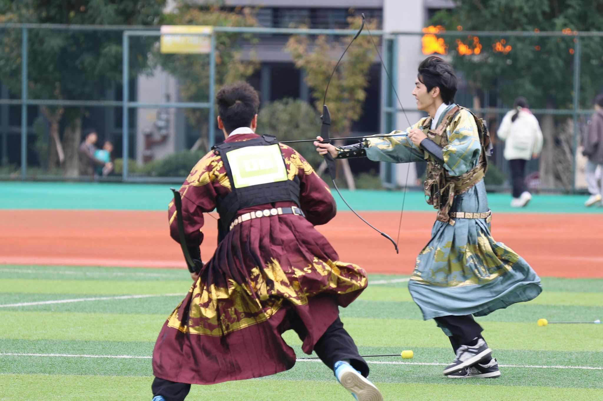 这是一场协作与冲突并存的活动。比赛中红蓝两队各自制定战术展开较量,弓弦声此起彼伏,箭矢交错飞驰,队员们在精准射击与敏捷躲避中展现高超技巧。剑拔弩张之际,队员们在进攻与防守中的战术配合又体现出卓越的团队协作智慧。躲避、拉弓、上箭,正面强攻、背后偷袭,进攻有方法,防守有策略,攻防之间彰显了当代大学生的智慧与勇气。