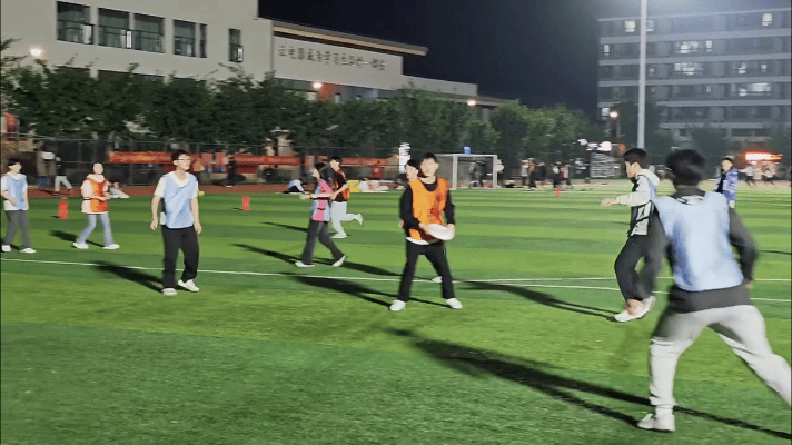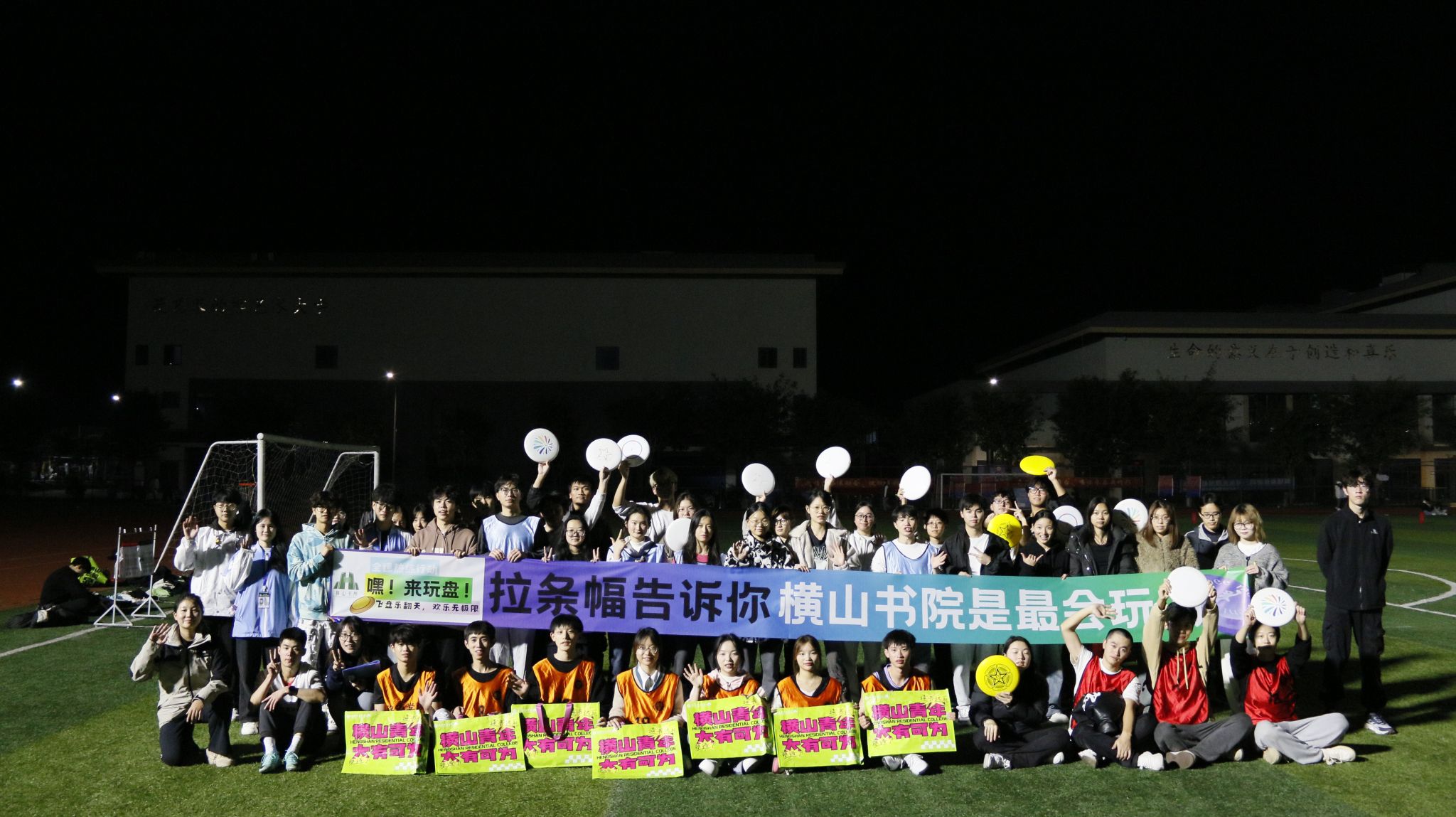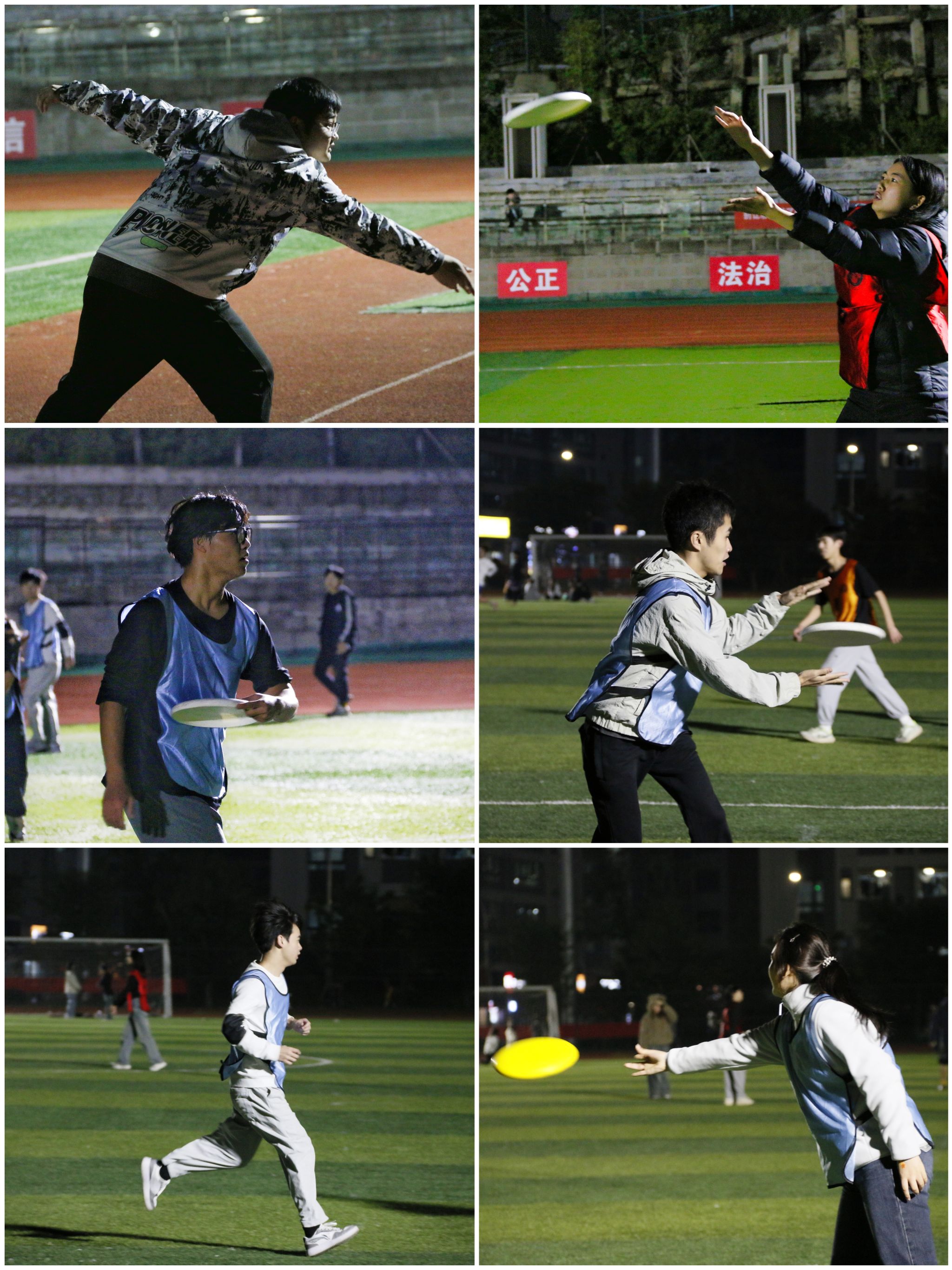 在快节奏的现代生活中,寻找健康、有趣的社交方式!为拓展学生运动视野,推广新兴时尚的体育运动,营造积极向上的校园运动氛围。在飞盘校队的支持和指导下,横山书院特邀大健康学院任教老师、飞盘专业运动员罗明珠老师于11月20日晚上19:00在校园绿茵场上,以飞盘运动为主线开展了全速热练行动第13期活动,来自不同书院、不同学院的80余名学子们打破传统社交壁垒,尽情释放、快乐奔跑,呈现了一场酣畅淋漓的校园飞盘友谊赛。