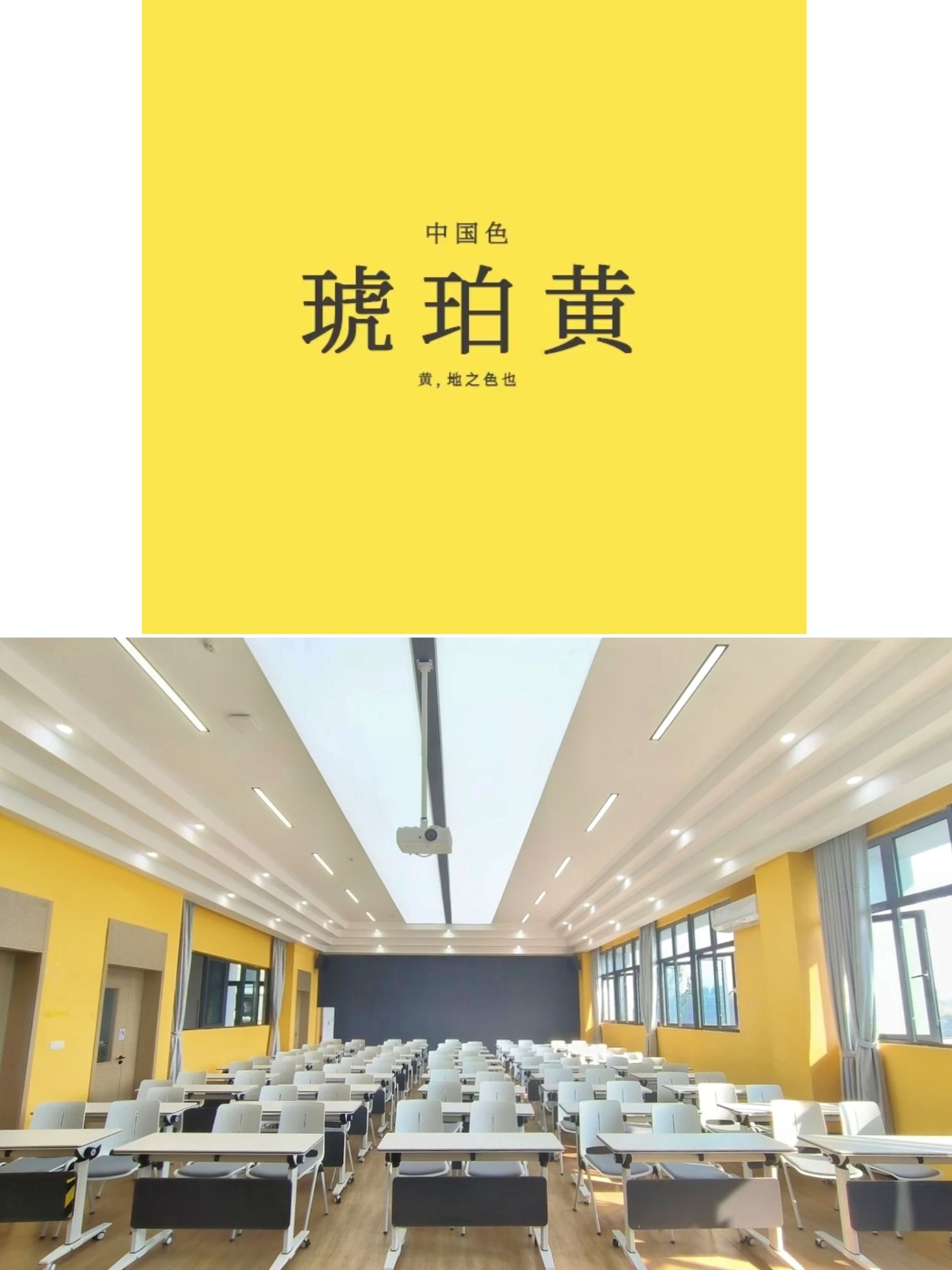 以瀛溪书院琥珀黄、玉棠书院故宫红、古剑书院活力橙、丁山书院玫瑰粉为代表的暖色调墙面