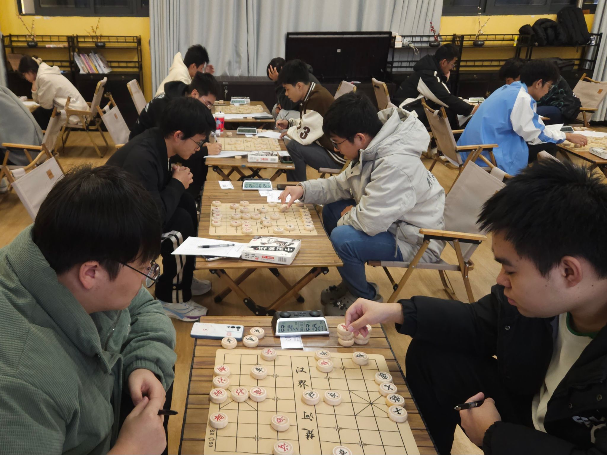 “车如流水,炮声轰鸣,龙腾马跃显深功。”在这方小小的棋盘上,每一场对局都如同一场激烈的战斗。学员们神情专注,目光犀利,仿佛置身于楚河汉界,彼此厮杀。每一次进兵、横炮和跳马,都饱含着深刻的攻防策略。在对弈过程中,每一步棋既是防守也是进攻,斗智斗勇之间,紧张氛围不断升温。