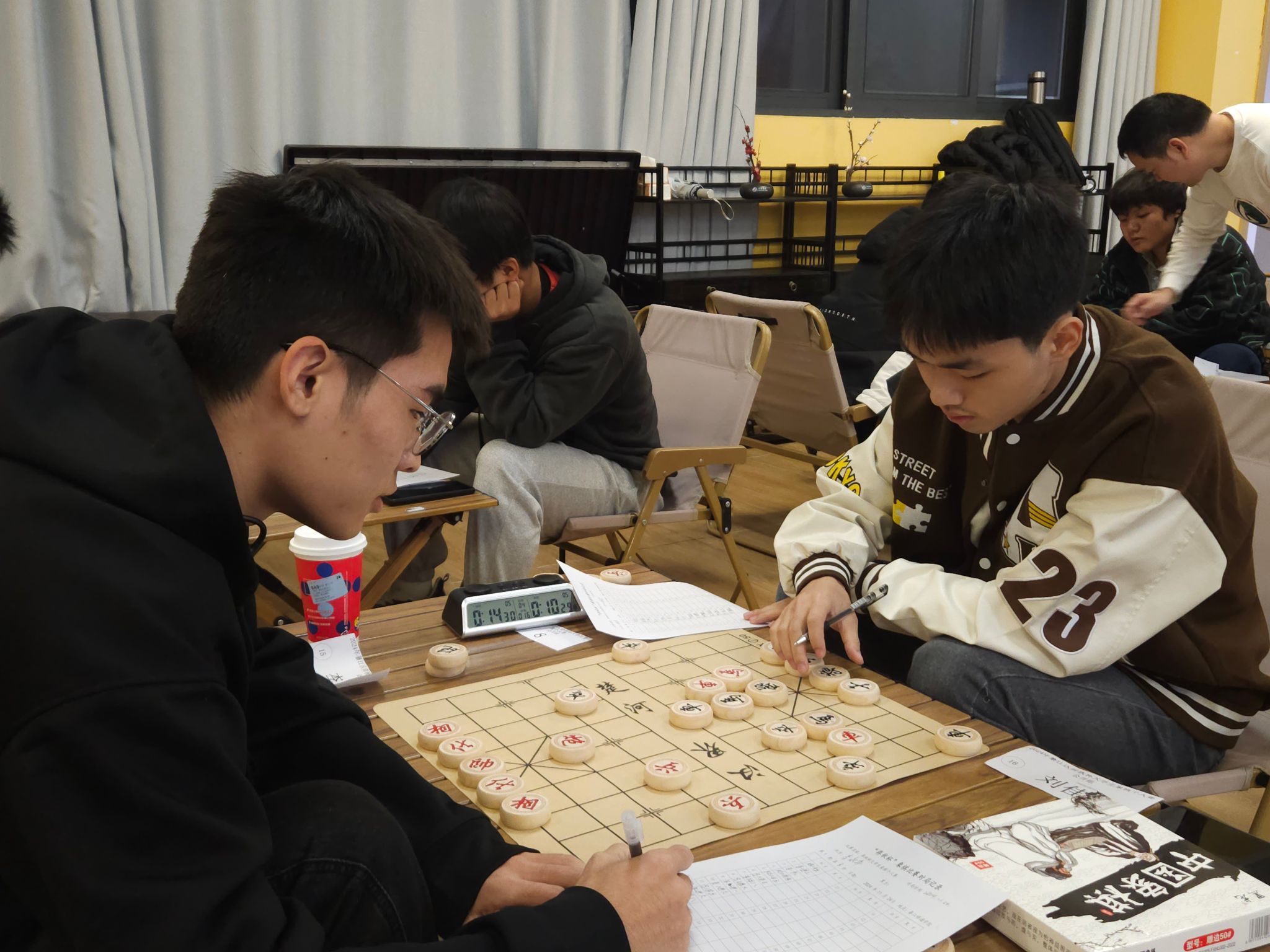在首轮对局中,学员们需要记录每一步棋的走法,即棋谱。掌握棋谱记录法对初学者尤其重要,它有助于清晰回顾和交流,理解棋局变化并提升棋艺水平。除了实战演练,棋谱也是学习棋手智慧、经验和教训的重要工具。曹老师建议学员们使用“天天象棋”软件记录棋谱,通过对照演练和自我反思,找出不足并加以改进。