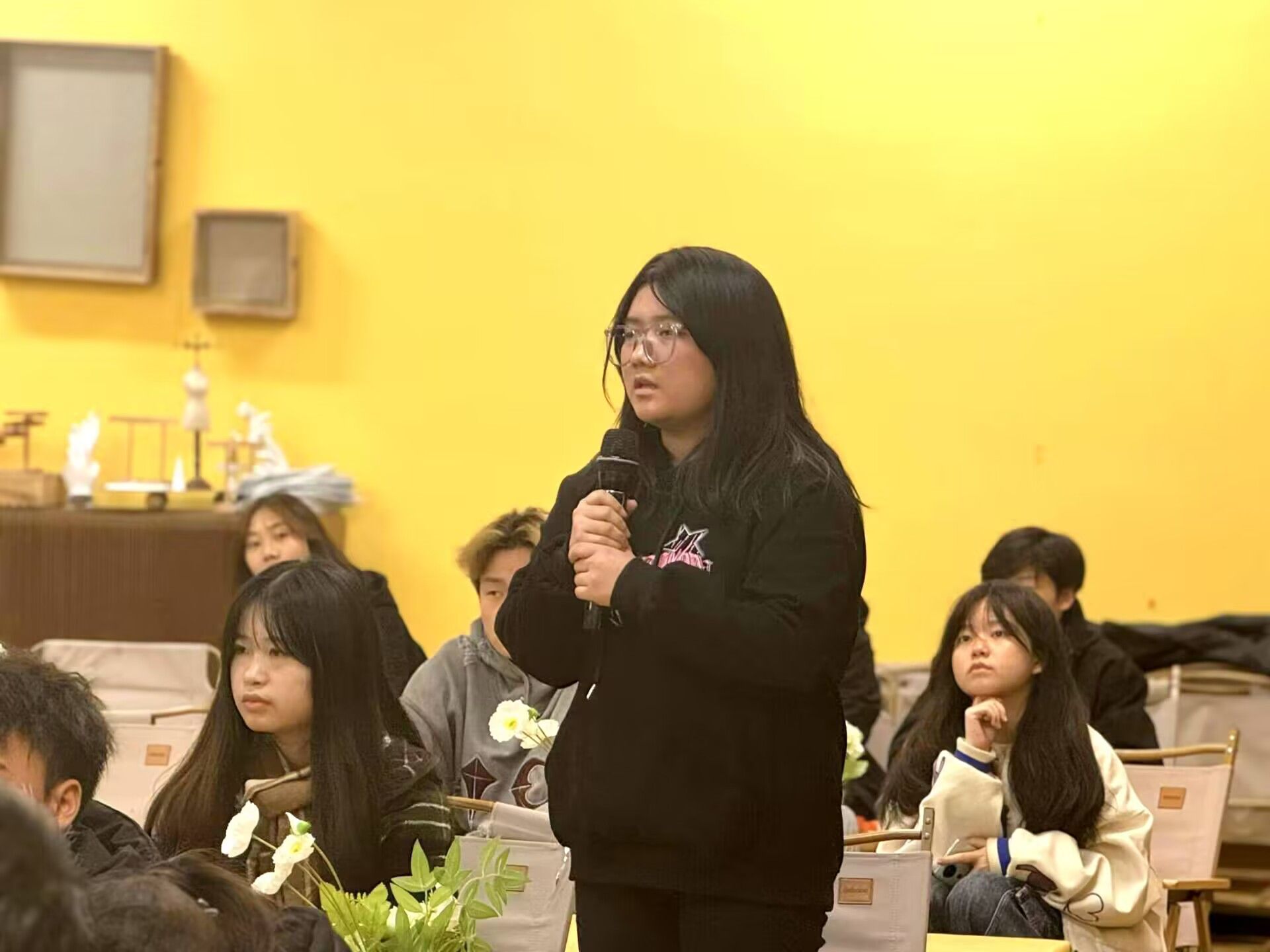 场下卢美玲同学提出了一个引人深思的问题:由AI所创作出来的作品究竟能否算作艺术?对此,周老师先是提到当下的相关大赛设置了两个不同的板块,其中一个是原创板块,另一个则是AI板块。这样的设置安排,本身就是对鼓励运用AI进行创作的一种积极体现。同时,她进一步阐释道,当创作者利用AI去创作作品时,同样需要调动自身的逻辑思维,只不过其创作思维与传统的创作方式有所不同罢了。因此,从这个角度来讲,AI创作出来的作品也应当算是艺术的一种呈现形式。最后,陈教授和周老师强调,在如今这个大数据时代,大家应当充分利用好现代科技,让AI继续深化古籍文献的数字化进程,我们自身也要肩负起文化保护与传承的重任,做好文化传承的接力人。