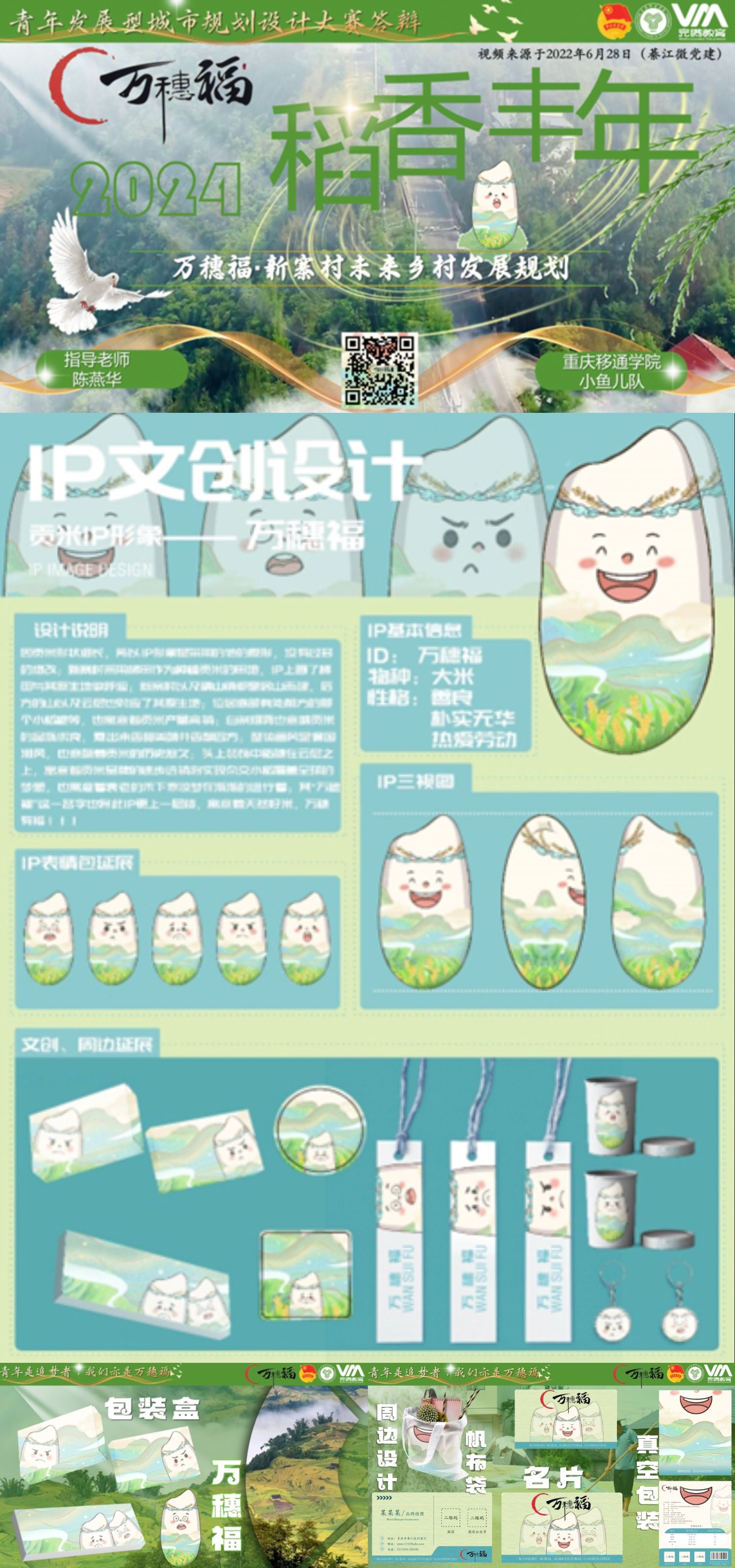 本次大赛我们对于新寨村的打造核心放在横山大米特色包装设计上,通过其他队伍在大米产量提高,大米IP打造,大米文化营造等方向的创意规划,也为我们团队提供了一些新的思考,让我们团队充分认识到学习不再局限于书本与课堂,而应当逐步转化为一场全方位的实践探索。