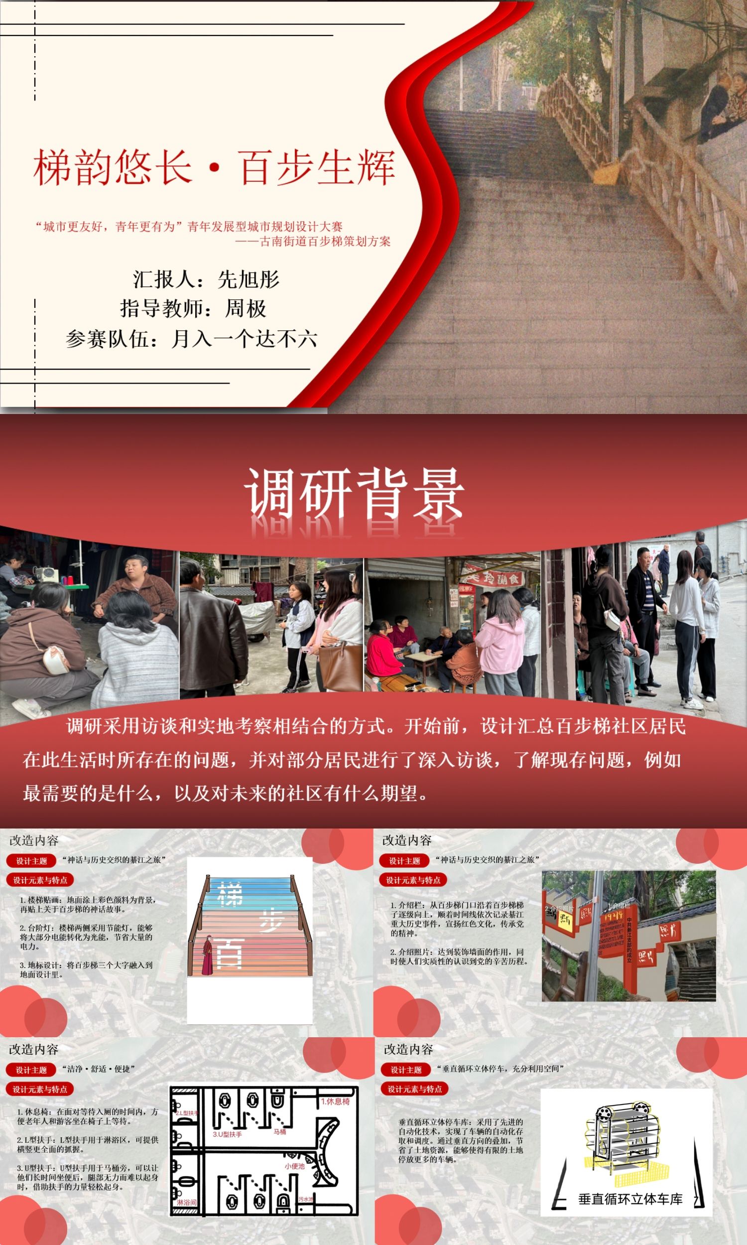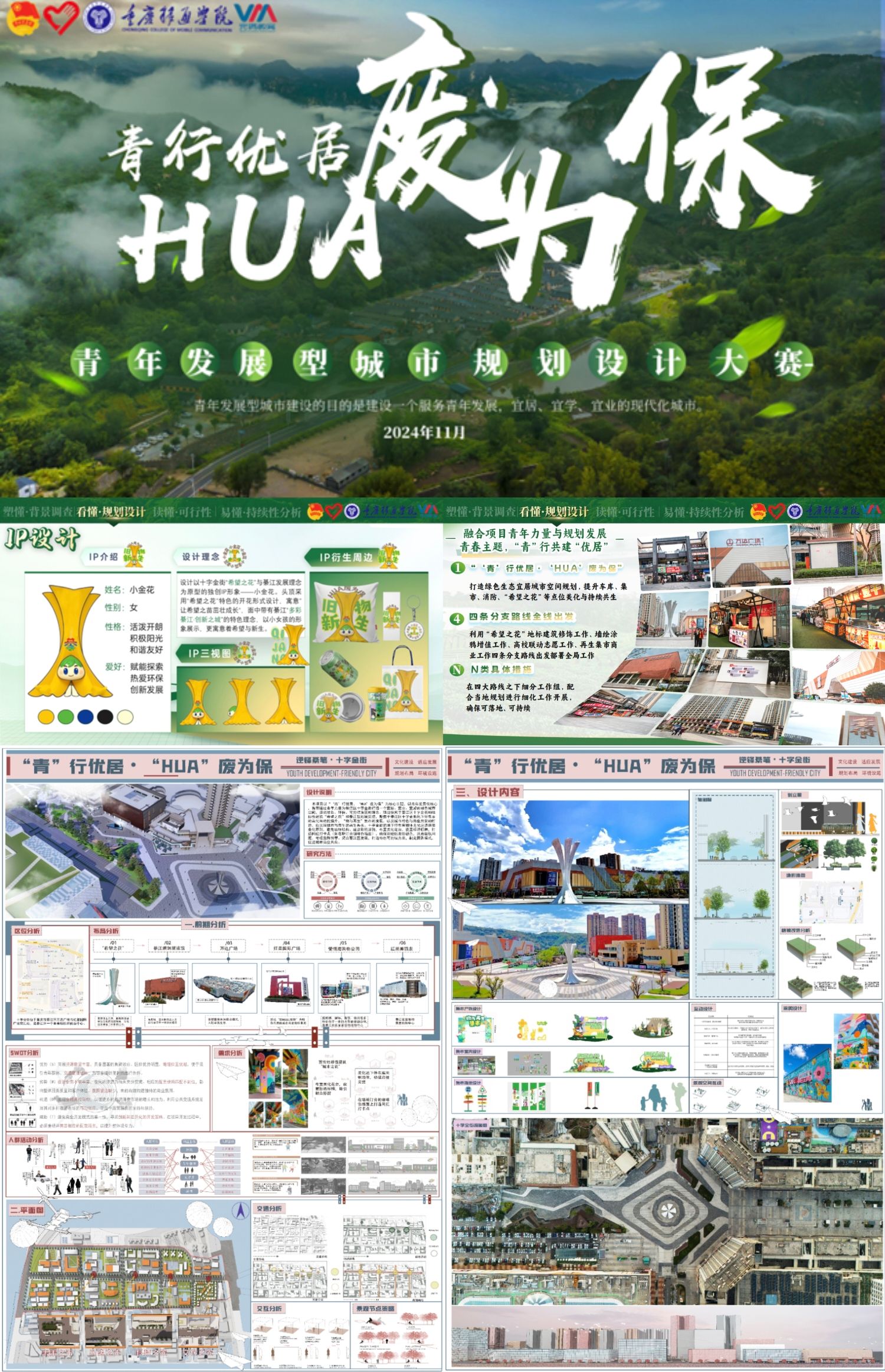 城市孕育青年梦想,青年构建城市未来。自大赛启动以来,吸引37支队伍参与,286名重庆移通学子参加,参赛团队围绕“城市对青年更友好,青年在城市更有为”的主题,于10月30日前往綦江百步梯、十字金街、中坝村、新寨村、金钗村进行实地考察,深入了解其发展现状,并紧密围绕青年发展型城市的构建需求,从城市规划的宏观视角到社区设计的微观细节,再到公共空间优化与品牌塑造等多个维度,提出众多富有创新思维又兼具实践价值的设计方案。经过层层筛选与激烈竞争,最终有10个优秀作品脱颖而出,成功晋级至决赛现场答辩环节。
