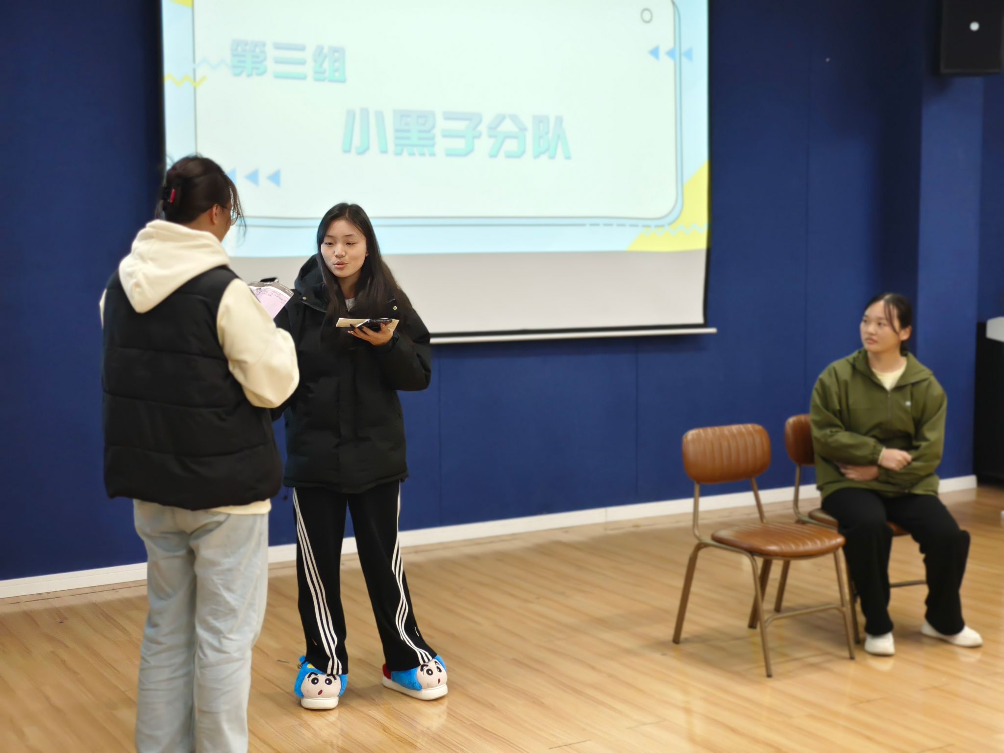 “点头yes摇头no,来是come去是go”,綦河书院基于“故事力”培养体系,通过演绎的方式将情感传递,鼓励同学们在领导力氛围中积极地参与实践和尽情表达,以此培养学生们交流互动、情感共鸣和思维创造的能力。特此綦河书院于11月27日在苍山阶梯教室开展了“挑战不NG”第18期,本期活动以团队模仿表演的形式,引导同学们相互协作,大胆展示所理解、所感受到的小品内容。