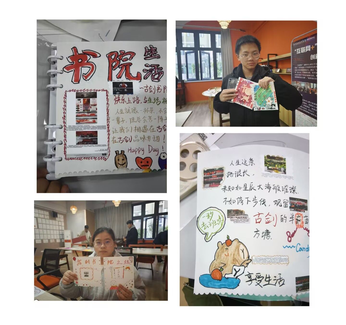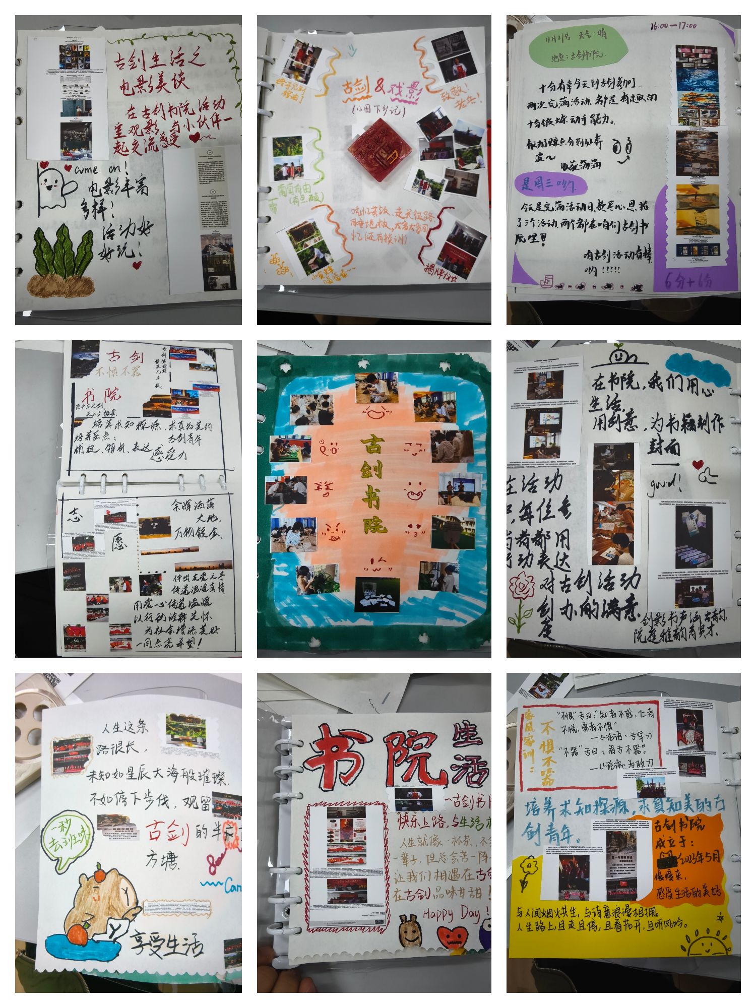 本学期古剑书院已与生活美学体验官们共创五本生活与艺术交织的生活手账,涵盖“包装袋美学”、“手账机关美学”、“对话”“成为闪闪发光的人”“我的古剑生活”等主题,充分展现了生活美学的独特韵味。同学们图文并茂地记录下那些美好而难忘的瞬间,将生活中的碎片转化为富有艺术感与个性的手帐,深刻体现了“生活艺术化”这一审美文化观点。