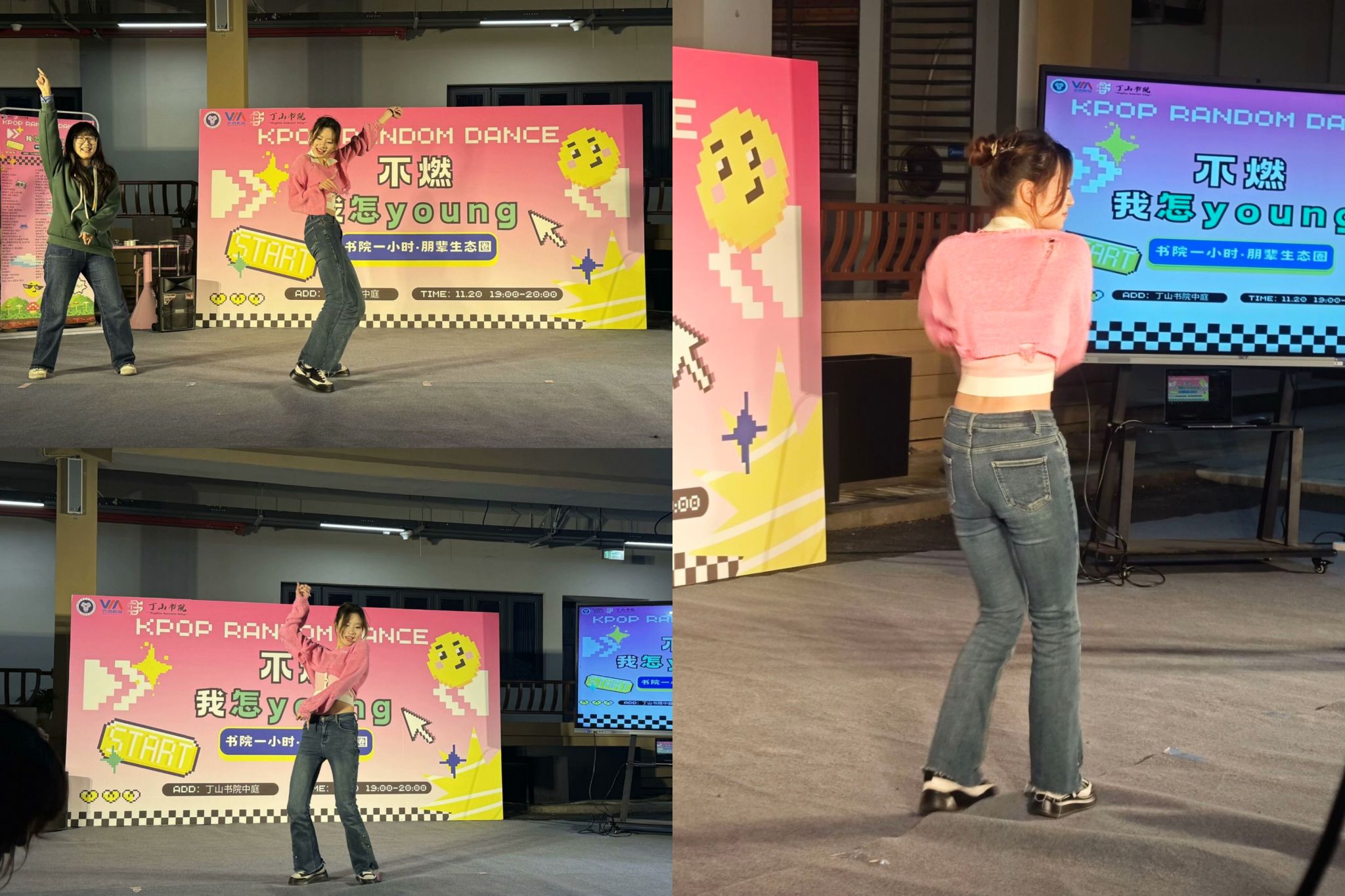 为点燃青春激情,打破常规束缚,营造活力四射、多元开放的校园氛围,丁山书院联合T.sparkle舞社于11月20号在丁山书院中庭举办了一场热血沸腾的不“燃”我怎“young”随舞活动。吸引了200多热爱舞蹈的同学齐聚一堂,共同演绎了一场青春与激情交织的盛宴。活动的帷幕随着动感的前奏响起而拉开,“Three!Two!One!”同学们如同被点燃的火苗,从场地各处飞奔至舞台周边。散发着他们的青春朝气和无畏勇气。热情在方寸书院间燃烧。未来,丁山书院也将持续打造契合同学们梦想与追求的舞台,愿每个人都能成为青春故事里的主角,让青春在舞步的跳跃中焕发灵动光彩。