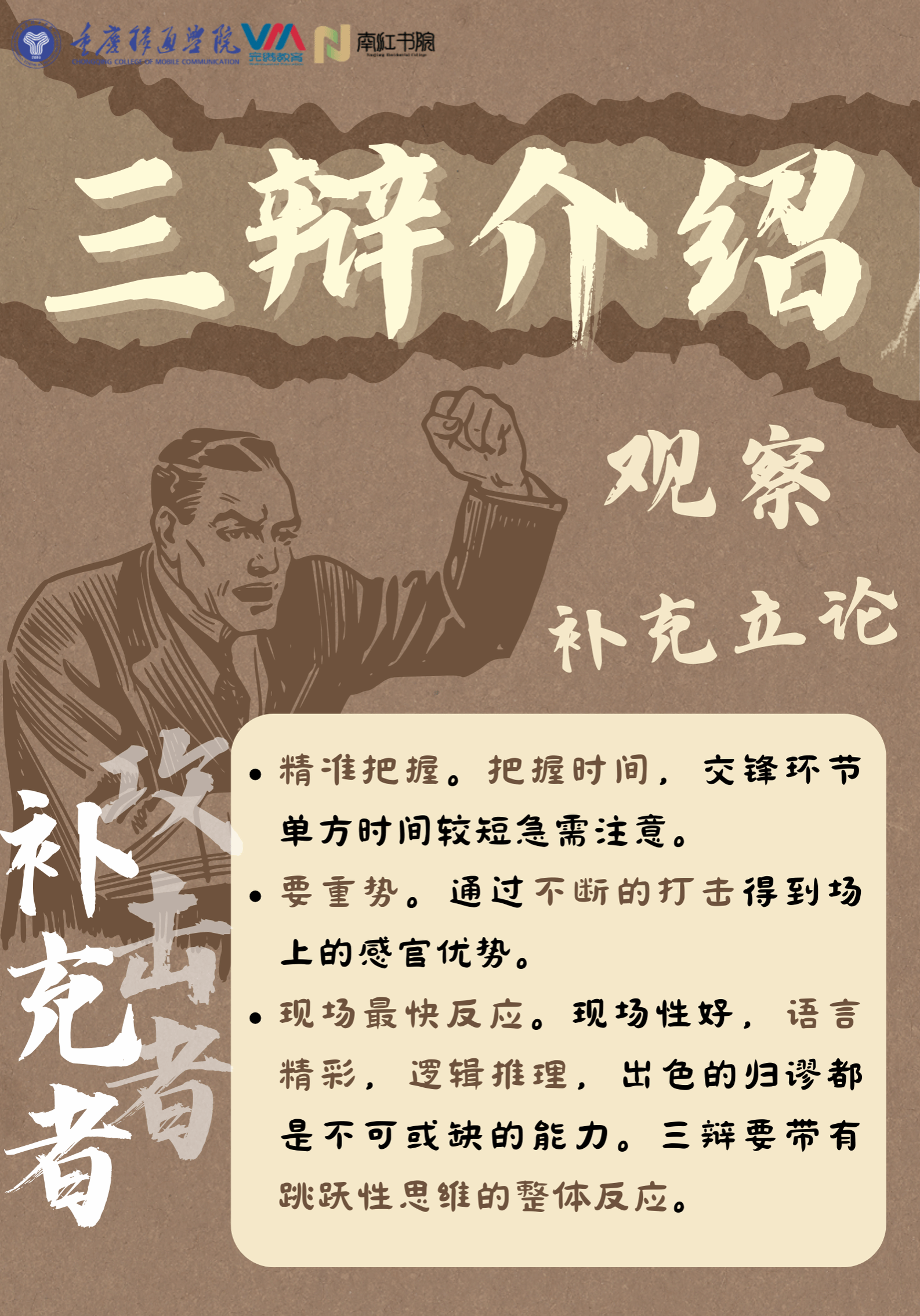 三辩则扮演着“补充者”和“攻击者”的双重角色。作为补充立论的角色,需要拥有丰富的知识储备和敏锐的观察力,他负责提供新的论据和角度以支持己方观点。