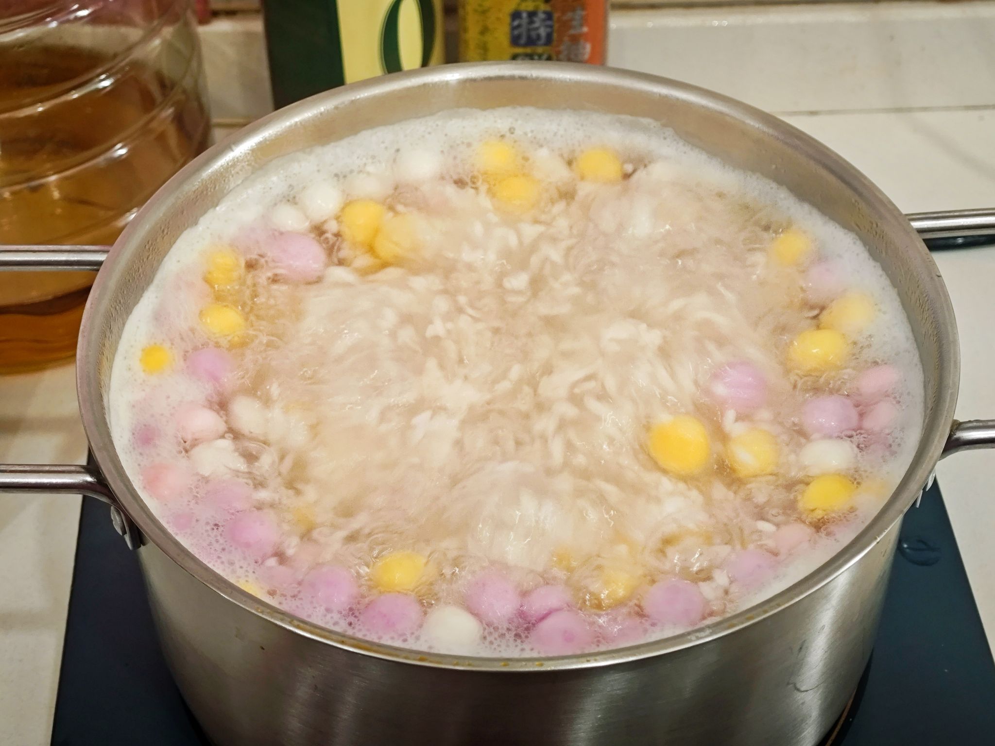 点火、烧水、下醪糟,参与者们热情满满地投入到活动当中。小厨房慢慢变得雾气腾腾,与屋外的寒风一碰就便化成了汽水,嵌在玻璃上,映照出屋内的忙碌与喜悦。一颗颗圆润洁白的汤圆跃入锅中。撒入其中的白糖迅速在热水中融化,为汤圆增添了一份纯粹的甜蜜;米酒则如点睛之笔,那淡淡的酒香与汤圆的甜香完美融合,瞬间将整个厨房都笼罩在香甜气息之中。当米酒遇上汤圆,当清甜与软糯交融,团圆与情感便都在这小碗之中了。