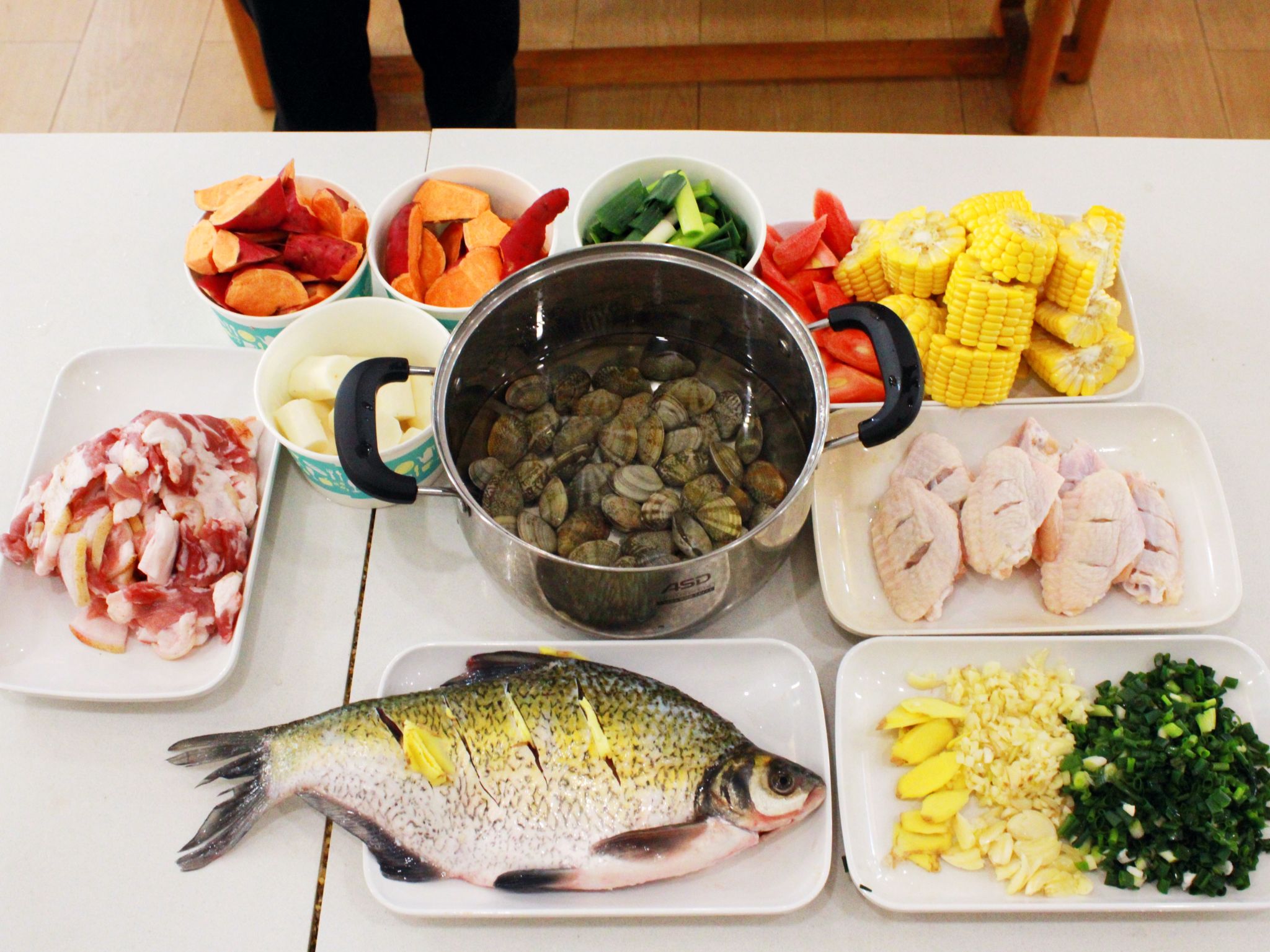 活动现场热闹非凡,参与者们把带来的食材摆放在了桌上,粉白的藕,鲜嫩的排骨,当排骨和莲藕都准备好后,大家纷纷将它们放入锅中,加入适量的水和各种调料。随着炉火的燃烧,锅中的汤开始翻滚,白色的水汽带着浓郁的香味升腾而起。