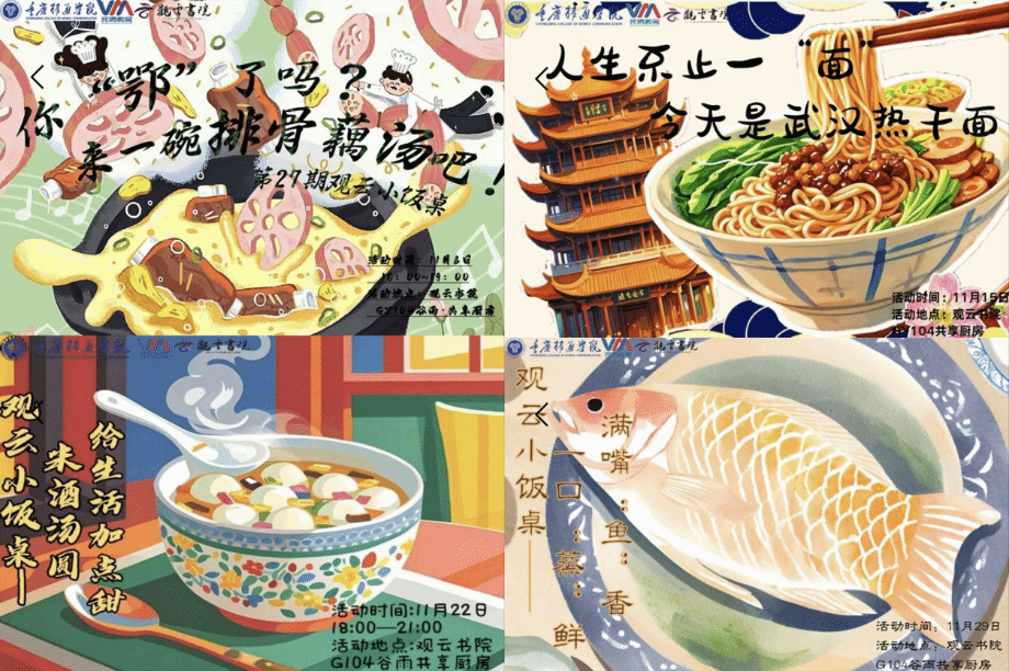 本期以湖北菜为主题的小饭桌活动已圆满结束。排骨藕汤的醇厚、热干面的劲道、米酒汤圆的甜蜜以及清蒸武昌鱼的鲜嫩等湖北经典美味,逐一呈现给同学们。每一道菜都蕴含着湖北深厚的文化底蕴,让学子们在品尝中深切感受到了湖北美食的独特韵味。小饭桌系列活动开展的意义远不止于餐桌上的美味,它更是促进了美食文化的交流与传承,为同学们打开了一扇探索湖北乃至全国各省美食文化的窗口,让传统美食在校园生活中焕发出新的生机与活力,为同学们的美食探索之旅铺设了一条充满乐趣与惊喜的道路。