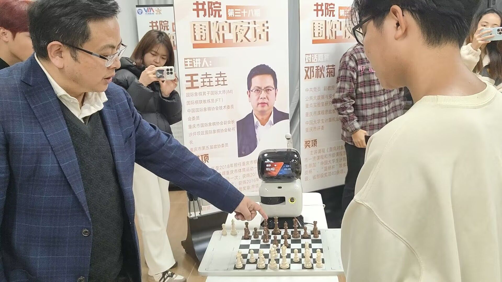 在原有的认知中,由于曾经受限于科技认知的局限性,人们普遍认为机器无法在棋类竞技中超越人类。王垚垚老师却借助“阿尔法狗(AlphaGo)完胜世界冠军”这一轰动性事件,引出科技发展对棋类游戏带来的深远影响,阐述了人工智能在这一领域的广泛应用现状。同时,他分享了国外杰出棋手——大波尔加的励志成长故事和个人辉煌成就,通过对比国内外棋手水平的差异,激发同学们对棋盘科技探索的热情,鼓励大家勇于实践,积极投身于棋类竞技与科技的融合之中。在现场,王老师还特别展示了香港研发的“圆萝卜”机器人,邀请同学们亲身体验人机对弈的乐趣,将理论与实践完美结合。