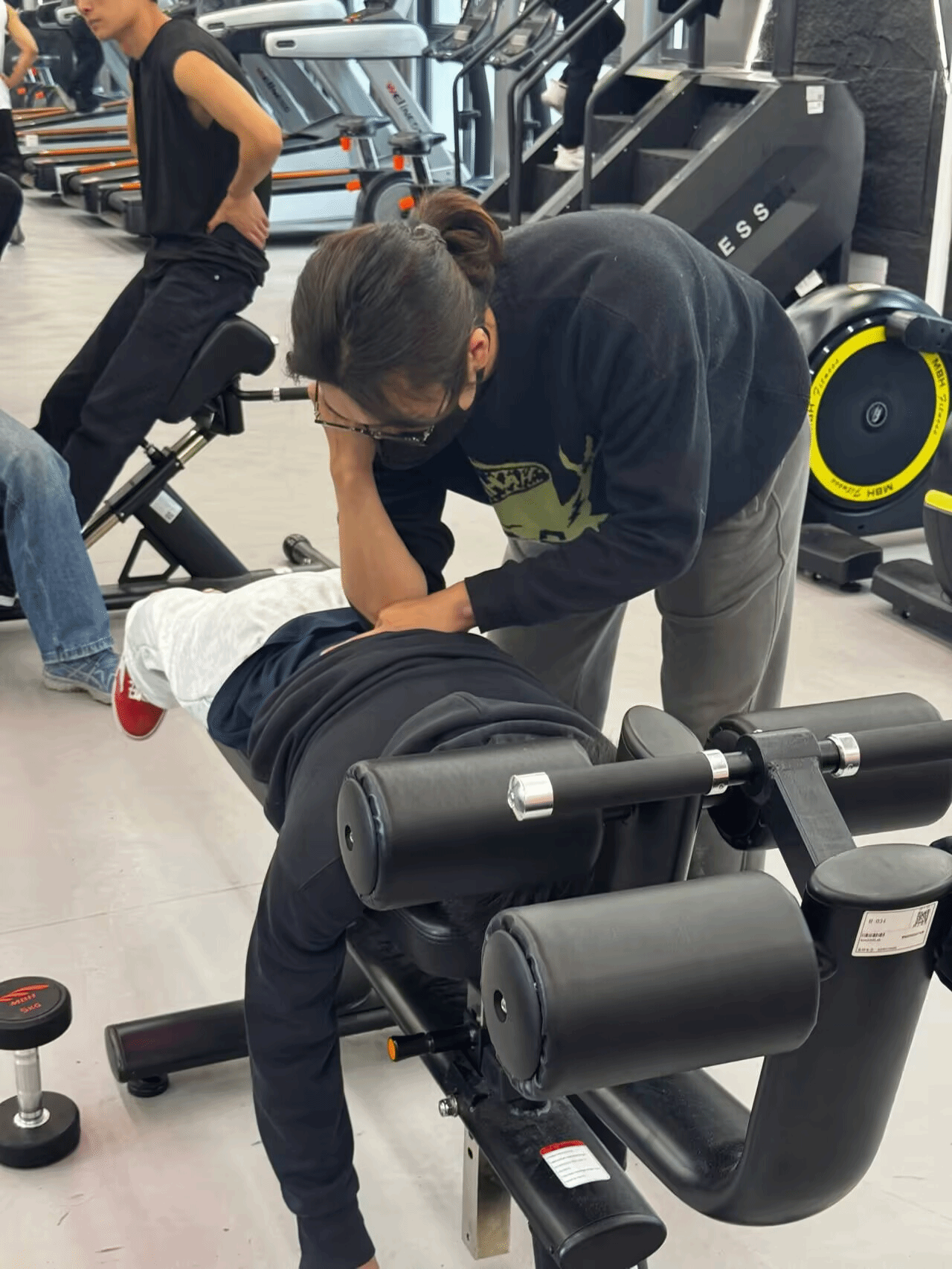 在课程中,另一位指导老师因近期高强度比赛而肌肉紧张,张老师借此机会为其进行现场按摩放松示范。同学们围聚一旁,仔细观察张老师如何精准找到肌肉紧张点,并运用专业按摩手法有效缓解肌肉紧张。张老师同时讲解了运动后正确放松肌群的重要性,他指出:“合理的放松是健身过程中不可或缺的环节,它能够帮助同学们避免运动损伤,提高健身效果。”