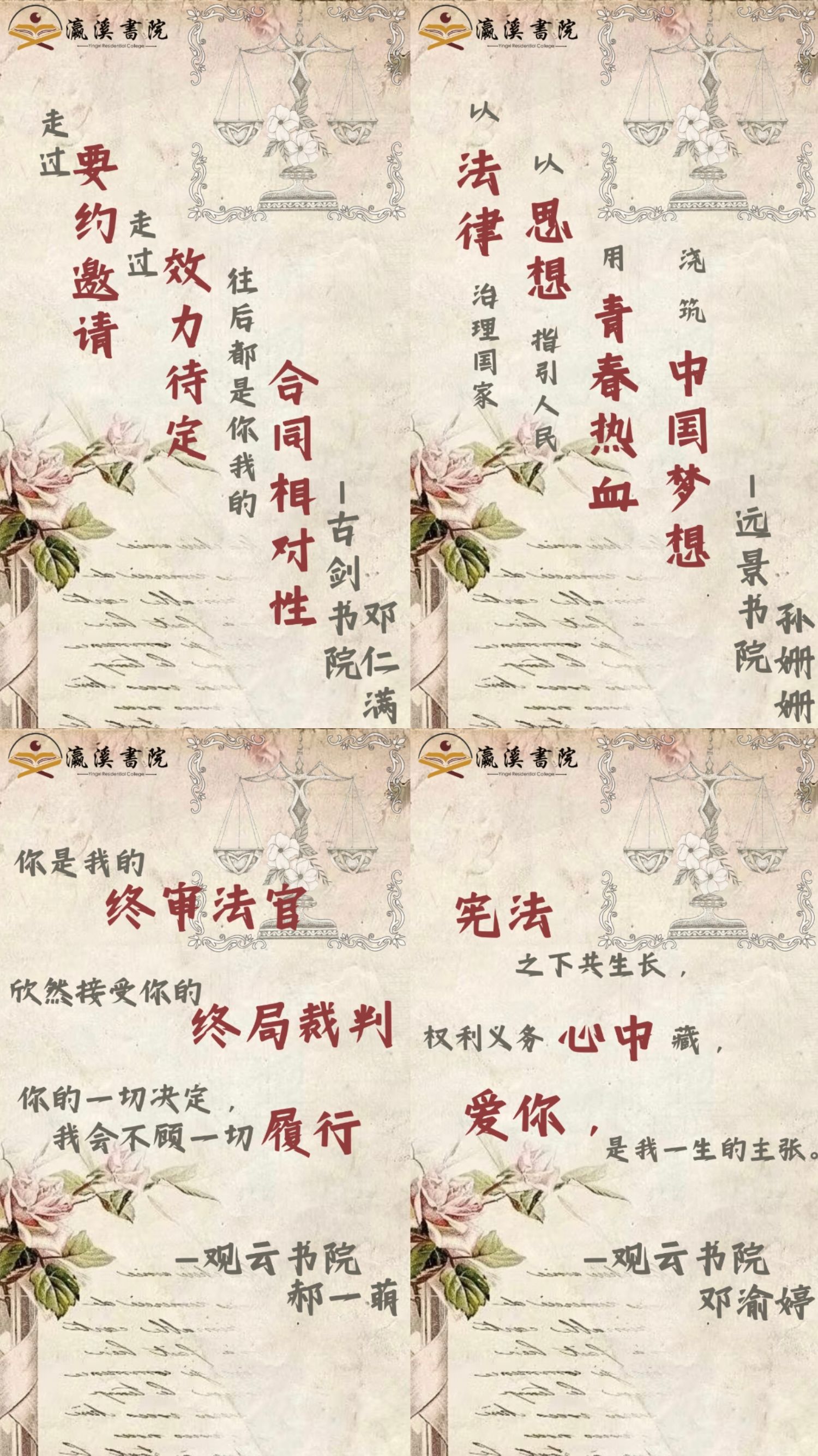 在国家宪法日,瀛溪书院举办"XIAN"在进行“市”普法集市——12.4国家宪法日法律特别活动。通过流行法律拼贴和法治教育内容嵌入,激发学生互动热情。“法治卡片打卡+定制盖章”活动以创新互动方式,利用卡片、拍照、书签、拼贴和问答等形式,使学生在轻松氛围中学习宪法、了解宪法,提升法治观念,增强法治信仰,积极推动校园法治文化建设。