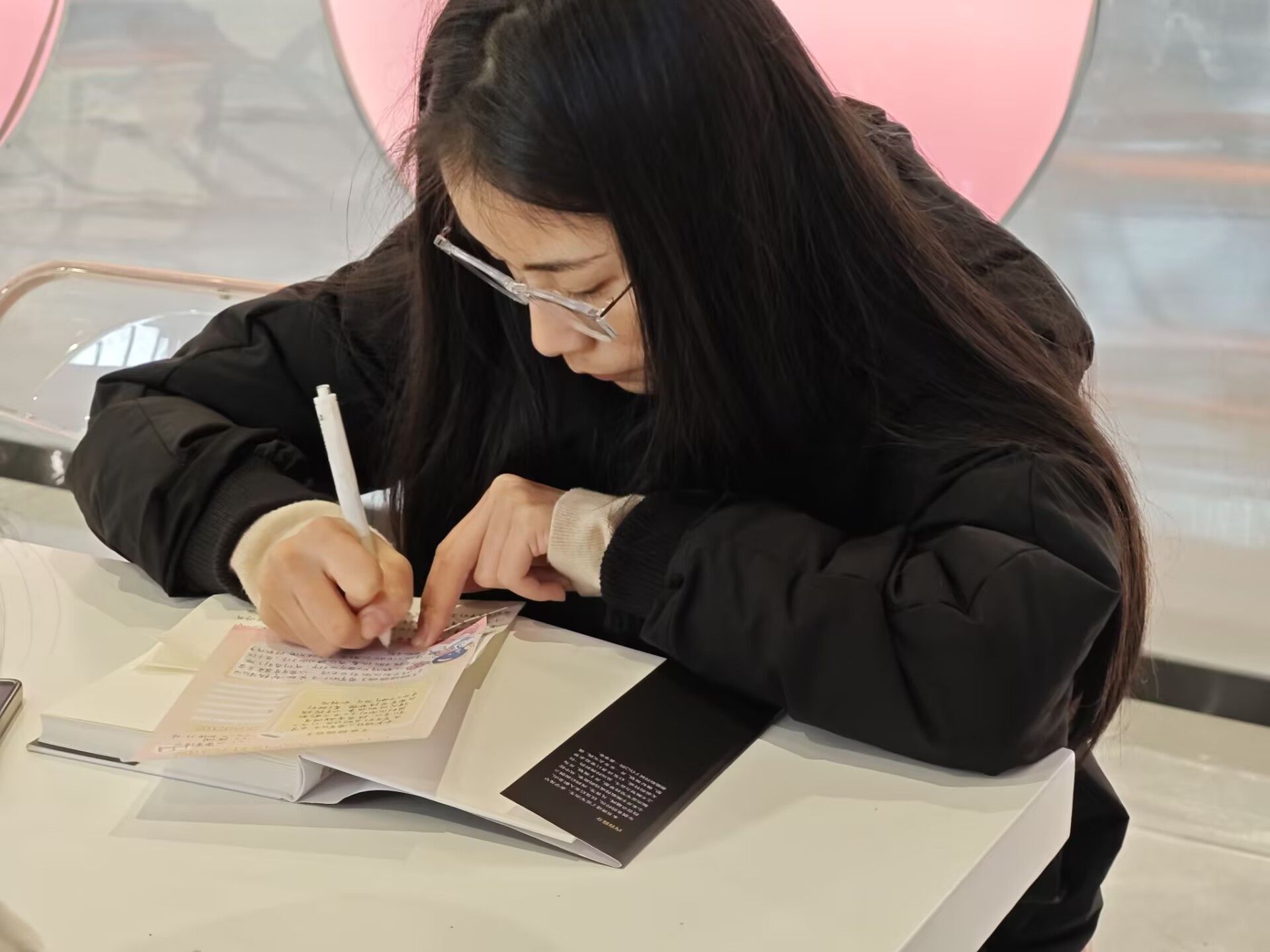 随着时间的推移,活动即将迎来尾声。同学们利用最后剩余的20分钟开始整理刚刚这场“阅读盛宴”所带来的思绪,拿起纸笔,一段段深刻的阅读心得在笔尖流淌。他们从雷军的故事中汲取智慧,思考关于梦想、坚持与成功的深刻内涵,并结合自身经历,写下一篇篇真挚而深刻的心得体会。来自丁山书院/戏剧影视学院的蔡雨杉同学说道:“雷军的创业并不是一帆风顺的,从他早年的创业失败再到现在的小米爆火,其中少不了他的坚持不懈以及商业头脑,这是我最敬佩他的一点。”还有来自观云书院/通信与信息工程学院的李安琪也表示“我觉得雷军的商业策略特别厉害,他能够准确把握市场动向,不断创新,这让我认识到在商业世界里,敏锐的洞察力和创新能力是多么重要。”