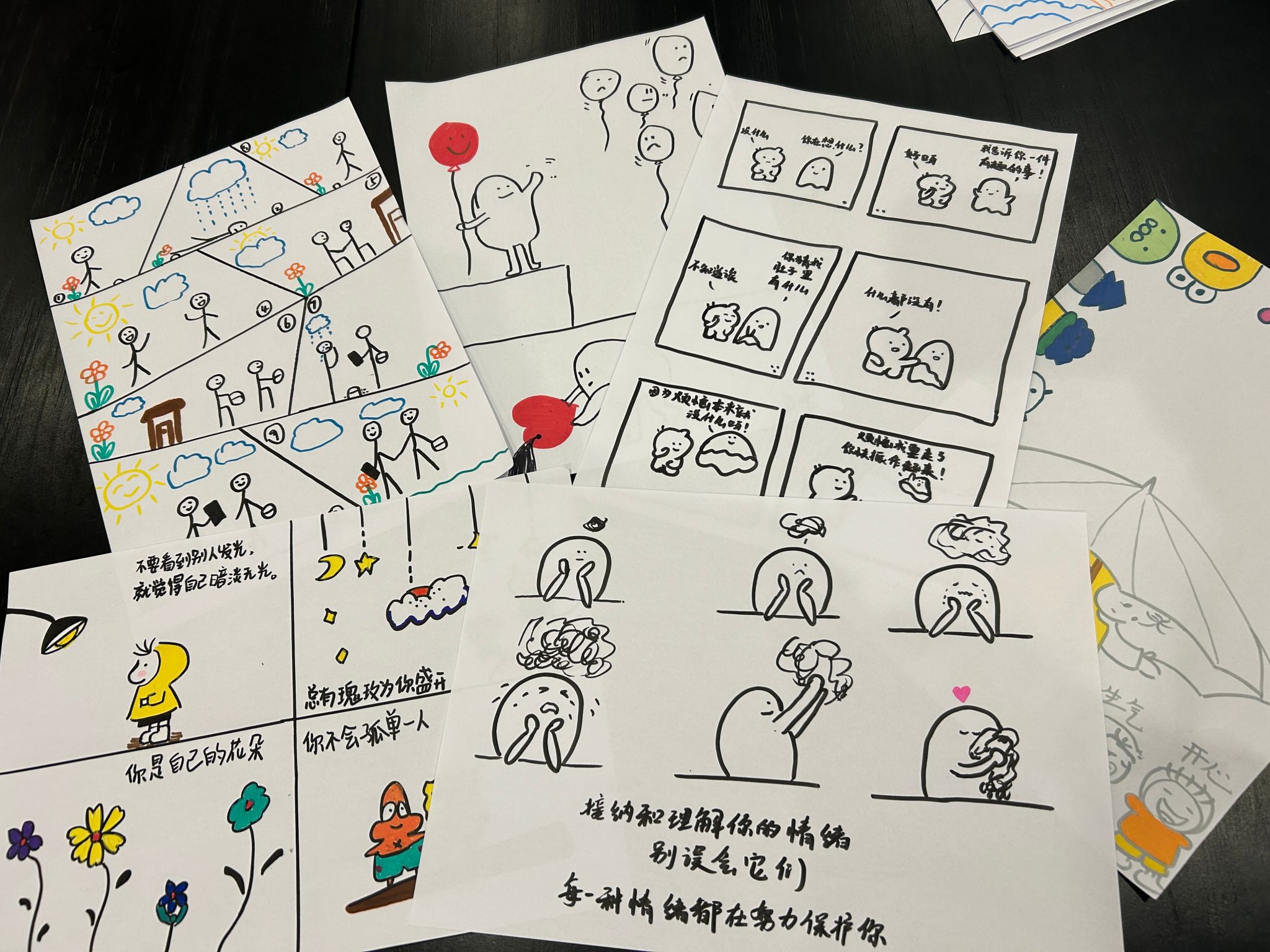 据活动组织者介绍,选择漫画作为表达形式,是因为漫画具有直观性与形象性。其能够跨越语言和文字的障碍,从而直接抵达人们内心深处。“对于很多同学来说,可能难以用言语准确地表述自己的心理状态,但通过绘画,他们可以更自由地表达那些隐藏在心底的情绪,从而更好地认识自己,实现自我疗愈。”