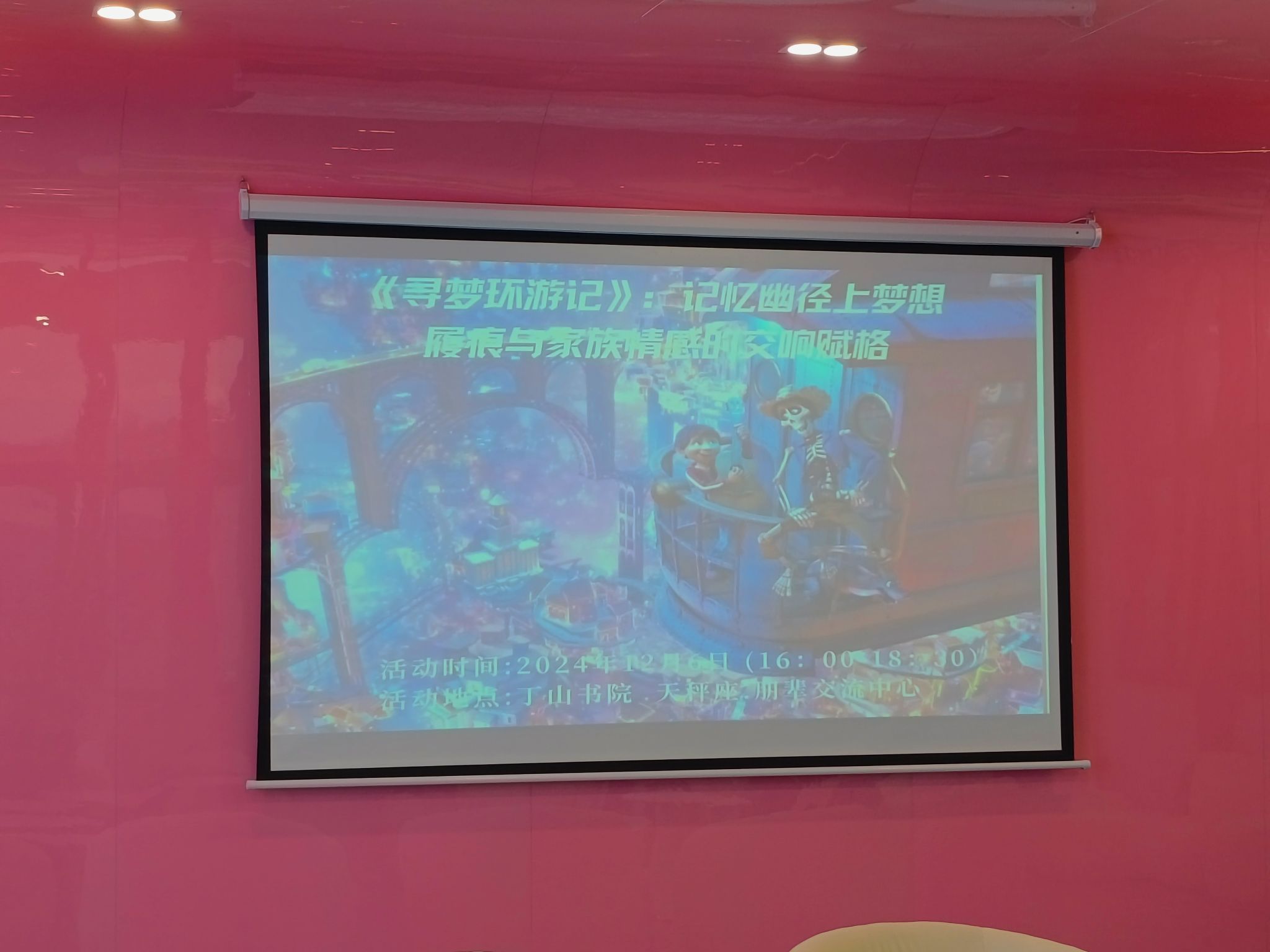 在梦想追寻的征途上,我们常常迷失于记忆的幽巷。本次活动深入灵魂底层,以情感羁绊为脉络,借《寻梦环游记》这部心灵启示录,开启奇幻的心灵愈疗冒险。活动于12月6日下午4点在丁山书院 天秤座·朋辈交流中心举行。在这里,我们将领悟亲情的深沉珍贵,感受梦想的炽热力量,思索家庭与梦想的内在联系,收获触动心灵的温暖,从而积攒起拥抱生活的勇气与明悟。