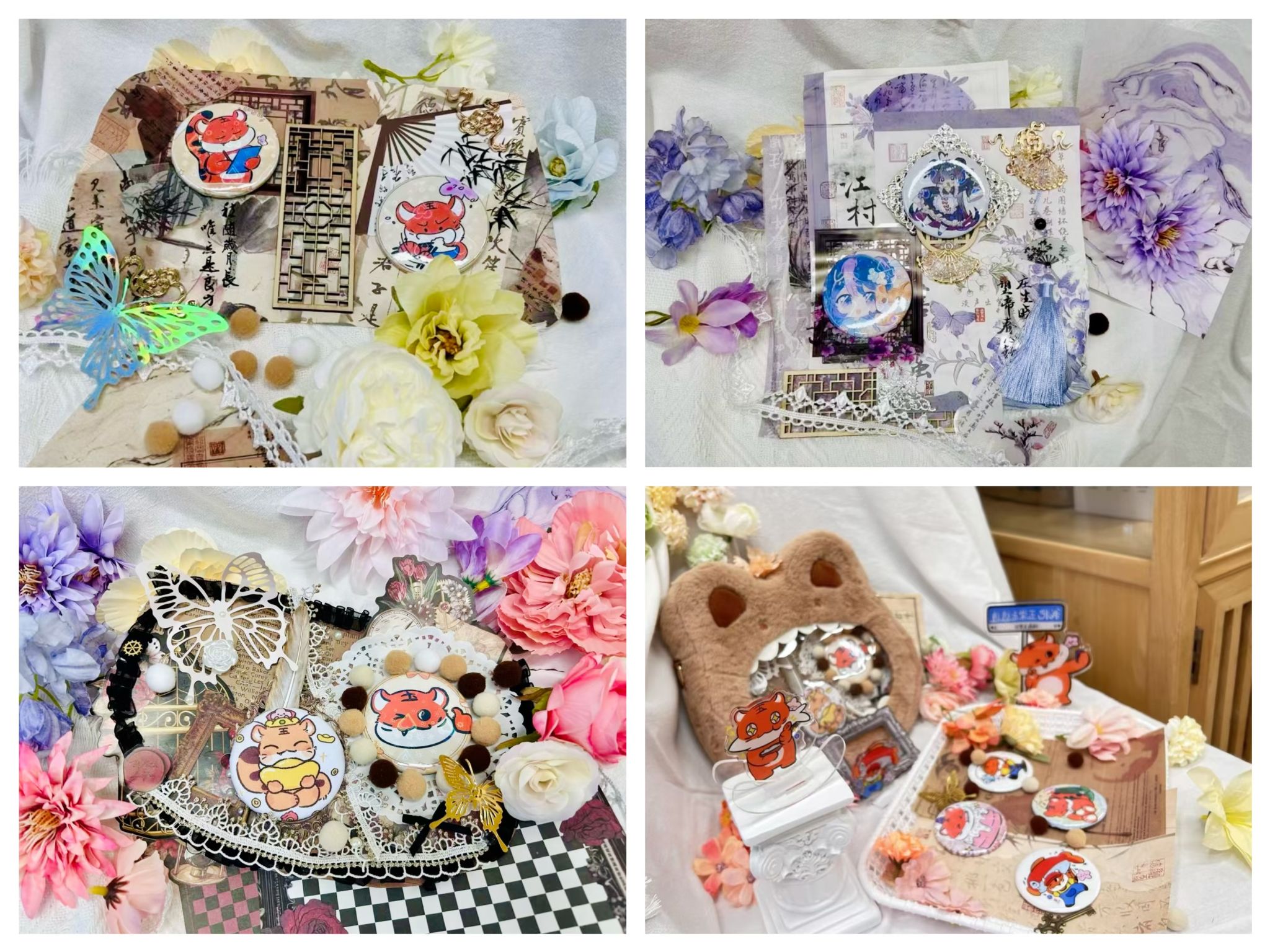 踏入研究室,精美材料与工具一应俱全。在这4期“禾午文创体验派对”系列活动里,成员们挑选心仪图案,调配色彩,细致印制,每一步都激发无限创意。在吧唧的小世界里,释放创意,自制文创,感受其独特魅力。这是创意与想象碰撞出无限可能的地盘。