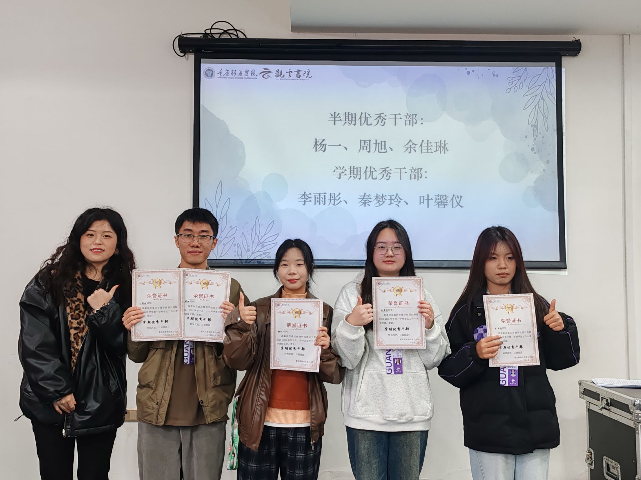 于浩渺学涯之沧海,恰如万马奔腾、驰骋者卓;恰似群鹰竞翔,振翅者拔。在这漫漫征途的灼灼华光内,总有数朵繁花极为绚烂,凭自身的芳菲润泽四野。经一学期的沉淀与砥砺,观云书院众干部、干事借非凡的才华与坚毅笃行的信念崭露头角。干部们率先垂范,既妥善达成自身使命,亦引领干事兢兢业业攻克诸多繁杂事务。他们仿若中流砥柱,于惊涛骇浪中稳把方向,使每一项工作皆如精雕细琢之美玉,闪耀着集体智慧与不懈努力的光辉,为书院的蓬勃发展夯筑坚实之基,铺就繁花似锦的前行之路。