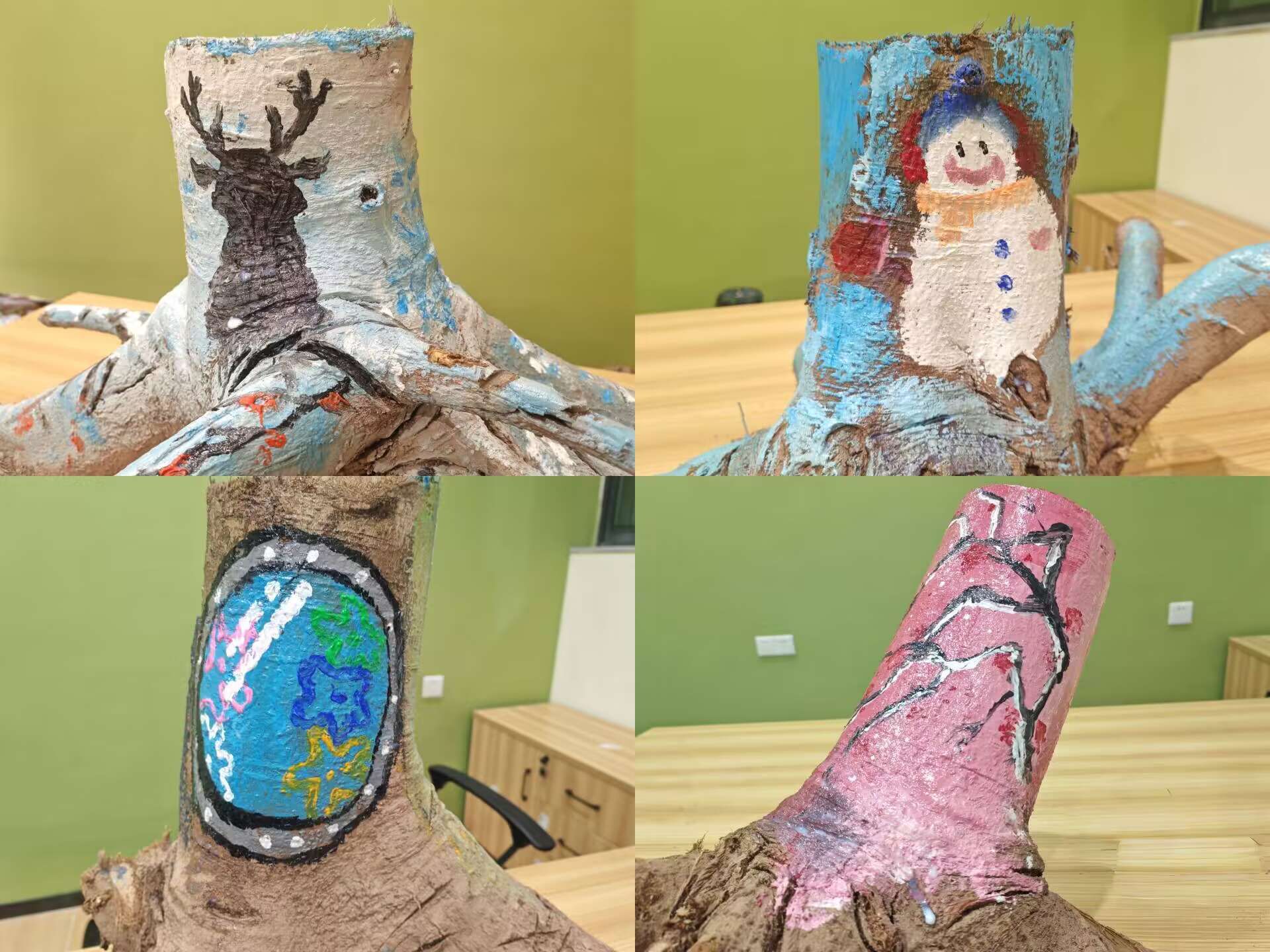 手绘井盖变“景盖”?在灰尘遮罩的井盖前,每位参与者都摇身一变成为故事的编织者。从回忆感满满的卡通IP形象,到栩栩如生的动漫IP人物,再到令人垂涎欲滴的美味食物,它们能否一搏你的笑颜?镜头转换,书院角落里,沉默无言的木桩守候着岁月流转,迎来了生命的蜕变。活动聚焦于“桩上彩绘”的艺术实践,以木桩为画布,挥洒创意,勾勒出一幅幅生动的艺术画卷,让原木风书院变得“有木有样”!“泡沫再生”接踵而至,手工创意结合斑斓色彩,予泡沫于新生。每一件作品都承载着参与者独特的情感,活动不仅展示了手绘创意的魅力,更体现了师生共同装点书院的多样性。