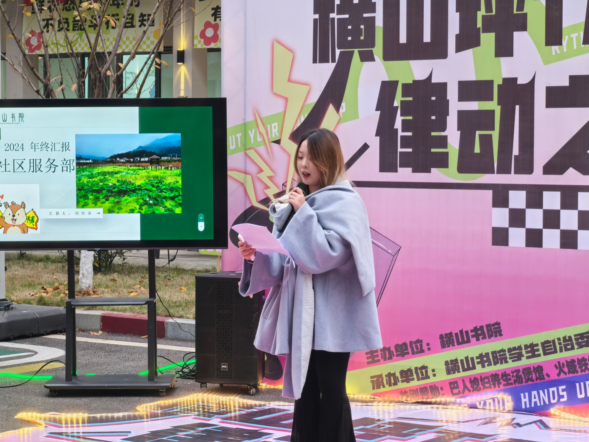大会步入尾声之际,为了全面总结并精彩展现横山书院一届三任学生自治委员会本学期以来的卓越风貌,深刻体会学生团队所蕴含的凝聚力与无限创造力,横山书院主席团的熊绍东主席进行了本学期书院成果的全面回顾与展示。他的汇报不仅细数了各项活动中的亮点与成就,更以生动的实例和饱满的情感,传达了书院在文化建设、学术交流、活动实践等多个领域取得的显著进步。熊绍东主席的汇报,不仅是对过去努力的肯定,更是对全体干部干事的一次深情激励,鼓励大家不忘初心,继续以昂扬斗志和团结精神,携手并进,共同开创横山书院更加辉煌灿烂的明天。