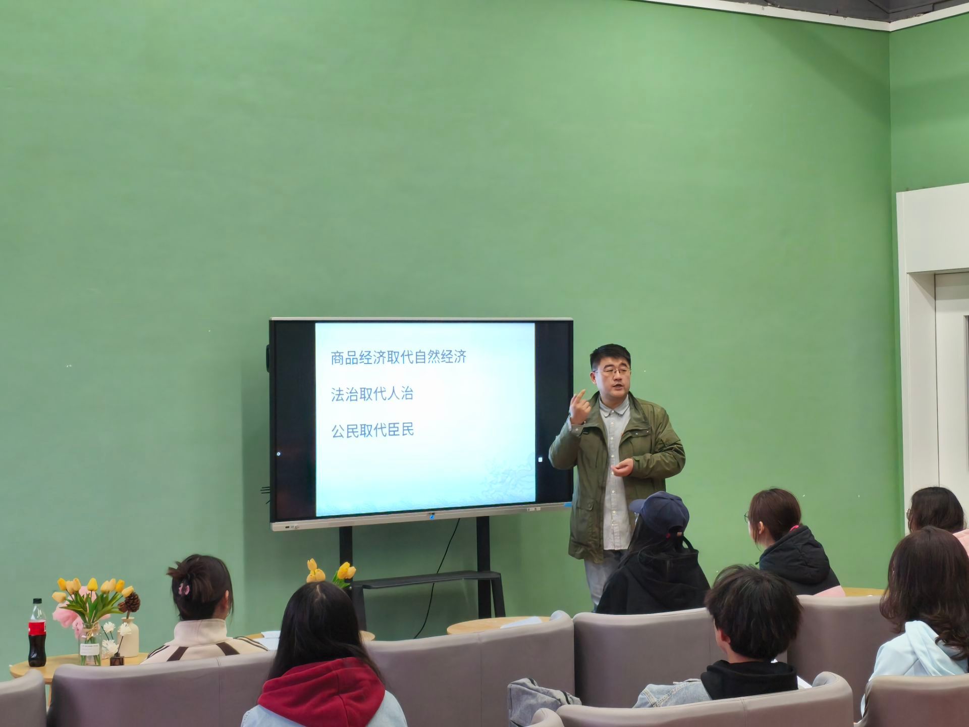 在首期活动中,付忠明老师聚焦马克思主义哲学原理。他凭借丰富的教学经验,运用举例、打比方等方法,将抽象的哲学概念生动呈现。同学们积极参与讨论,思维的火花不断迸发。一位同学深有感触地说:“此次活动让我对哲学有了全新认识,它不再是高高在上的理论,而是能指导生活的智慧源泉,让我学会深度思考与积极面对人生挑战。”此次活动不仅加深了学生对马克思主义哲学的理解,更有力地推动了他们思维素养的提升,为其日后的学术探索和生活实践奠定了坚实基础。