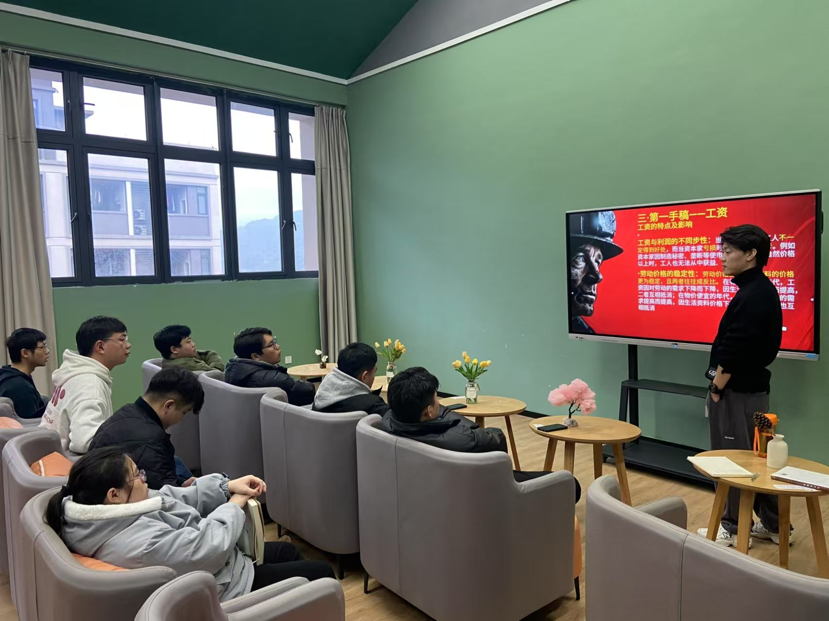 12月6日的《1844 经济学哲学手稿》的导读活动由徐铖和甄白灵老师主持,10名学生参与回顾马克思的思想转变历程。老师们对书中核心内容进行了阐述,提出了“如何防治‘终产者’出现” 等深刻问题,引导学生走进青年马克思的精神世界,深刻领悟党的伟大初心,增强了学生的政治素养与历史使命感。