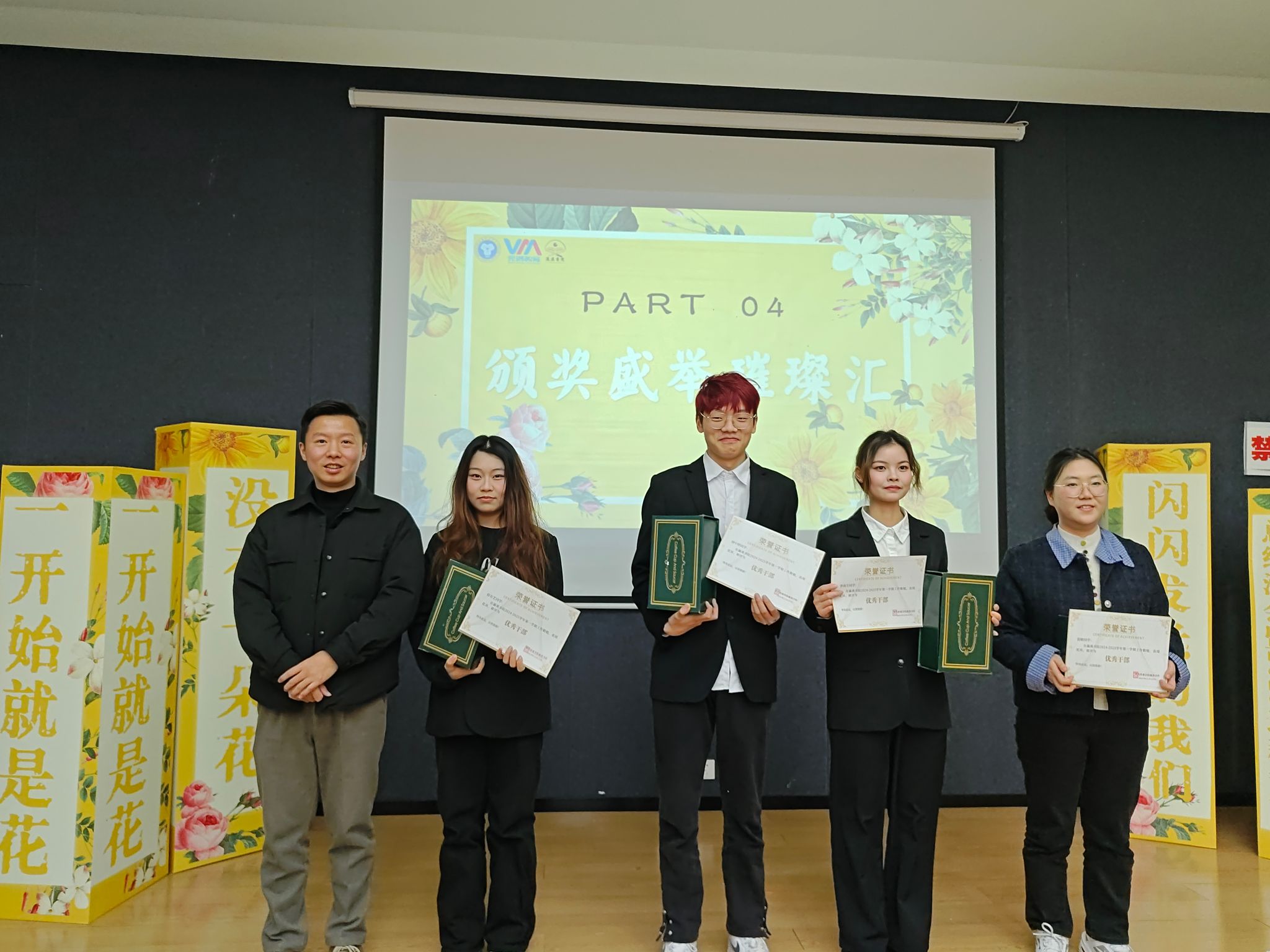 最后卢柯毓老师、陈佳俐老师、韩雨彤老师对本学期表现优异、成绩突出的干部干事进行了表彰。每一张奖状背后都蕴藏着学生的用心付出,而这份荣誉也会化作动力,督促他们在今后的日子秉持初心,继续书写新辉煌。