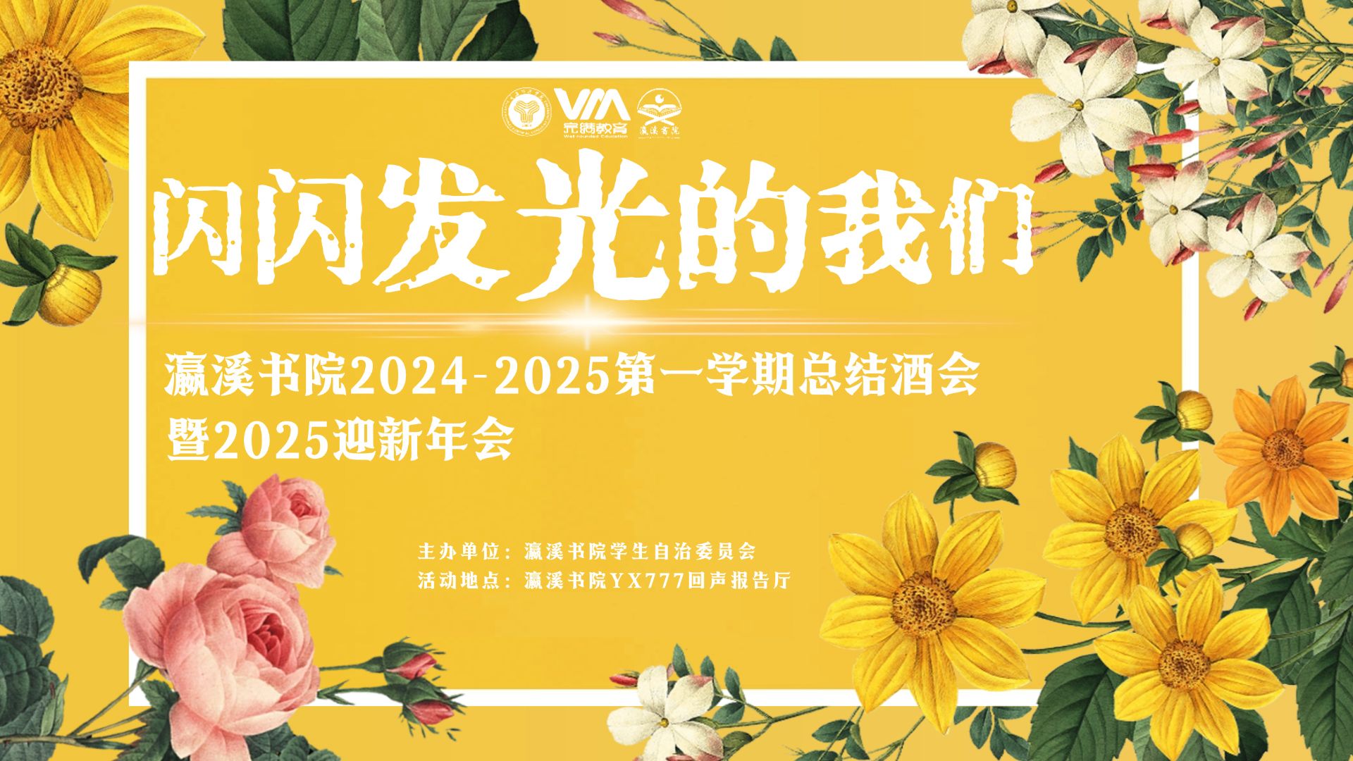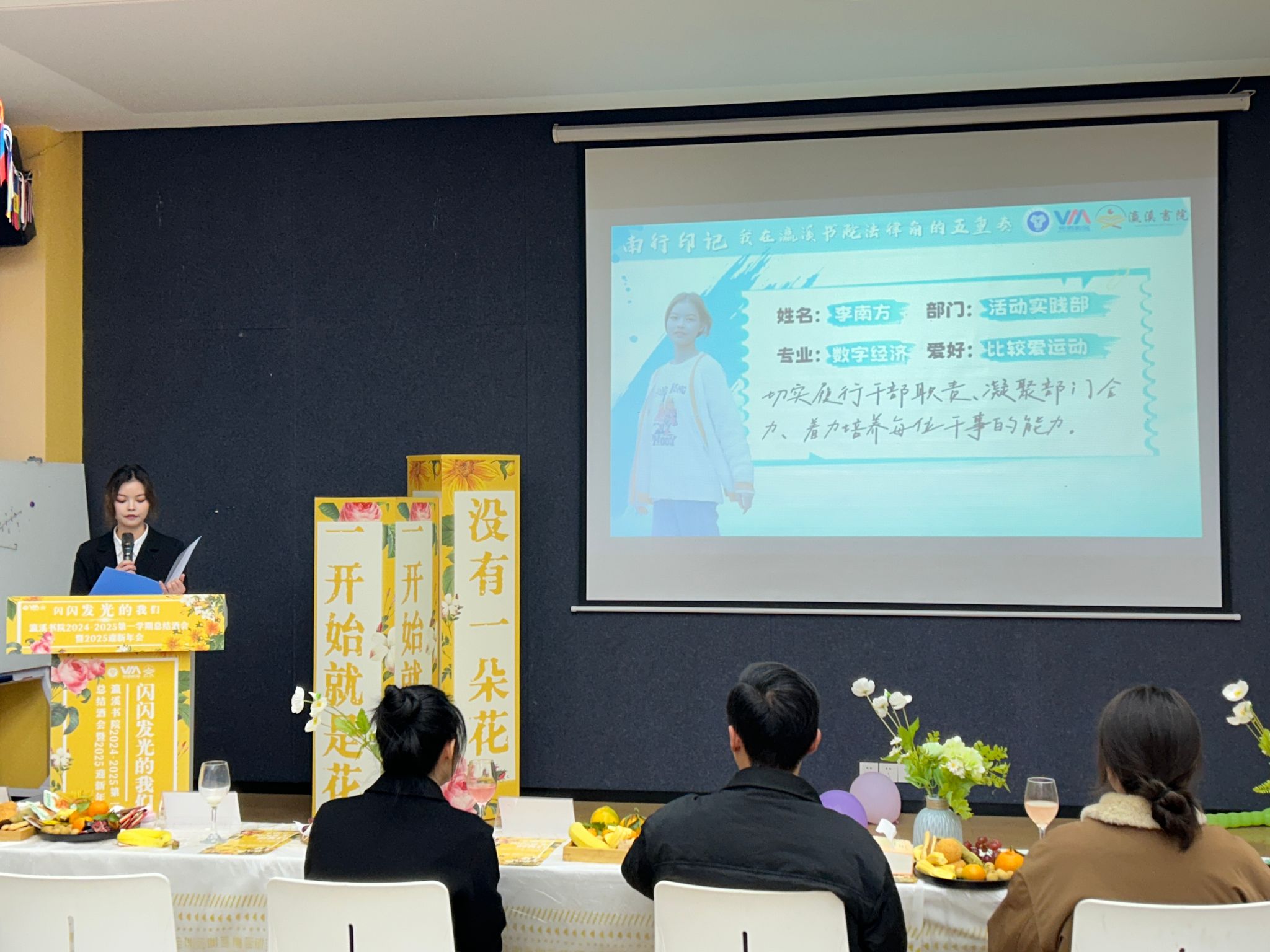 这世界盛大灿烂,每个人都可以是干千万万中的任意一颗小星星,做闪闪发光的“我们”。随着2024年的完满日历翻至最后一页,为对瀛溪书院2024-2025学年第一学期的工作进行全面总结,深入分析本学期学生组织各项活动、工作事项的不足,加强师生联络与朋辈交流,提升团队整体凝聚力与责任感,立志打造广大学子集学习、生活、社交、互助共享的理想家园,瀛溪书院特此举办瀛溪书院一届三任学生自治委员会2024—2025学年第一学期总结表彰酒会暨2025年迎新年会。