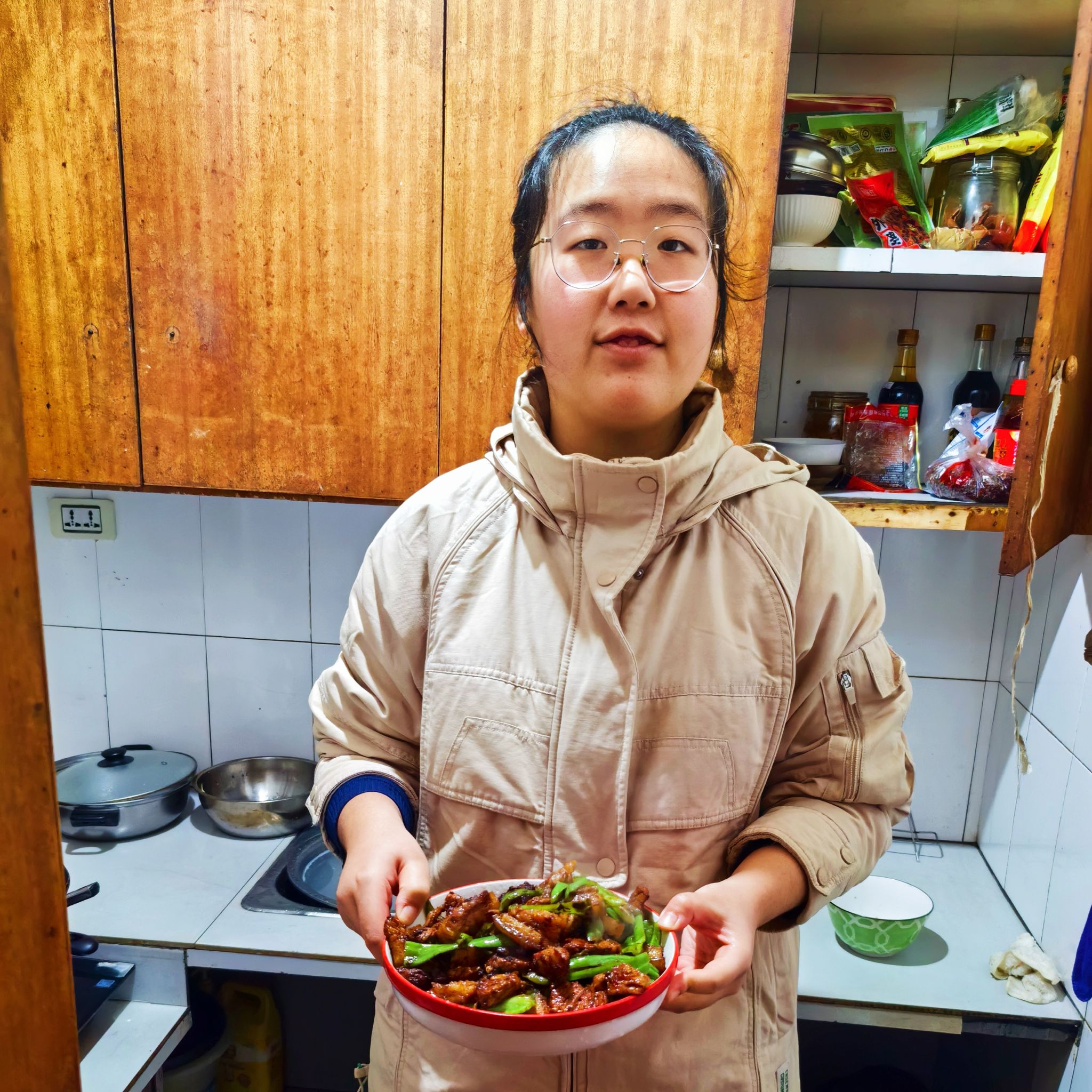 四川的杜宛婷用视频记录了家乡年夜饭的经典菜肴——豆豉辣椒炒肉。她将五花肉切片,用豆豉、辣椒和蒜末爆炒,香气扑鼻。照片中的豆豉辣椒炒肉色泽油亮,麻辣鲜香,既是四川人对热辣风味的热爱,也是一道家常菜里蕴藏的年味温情。